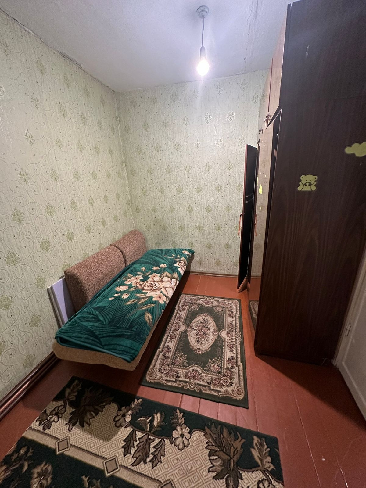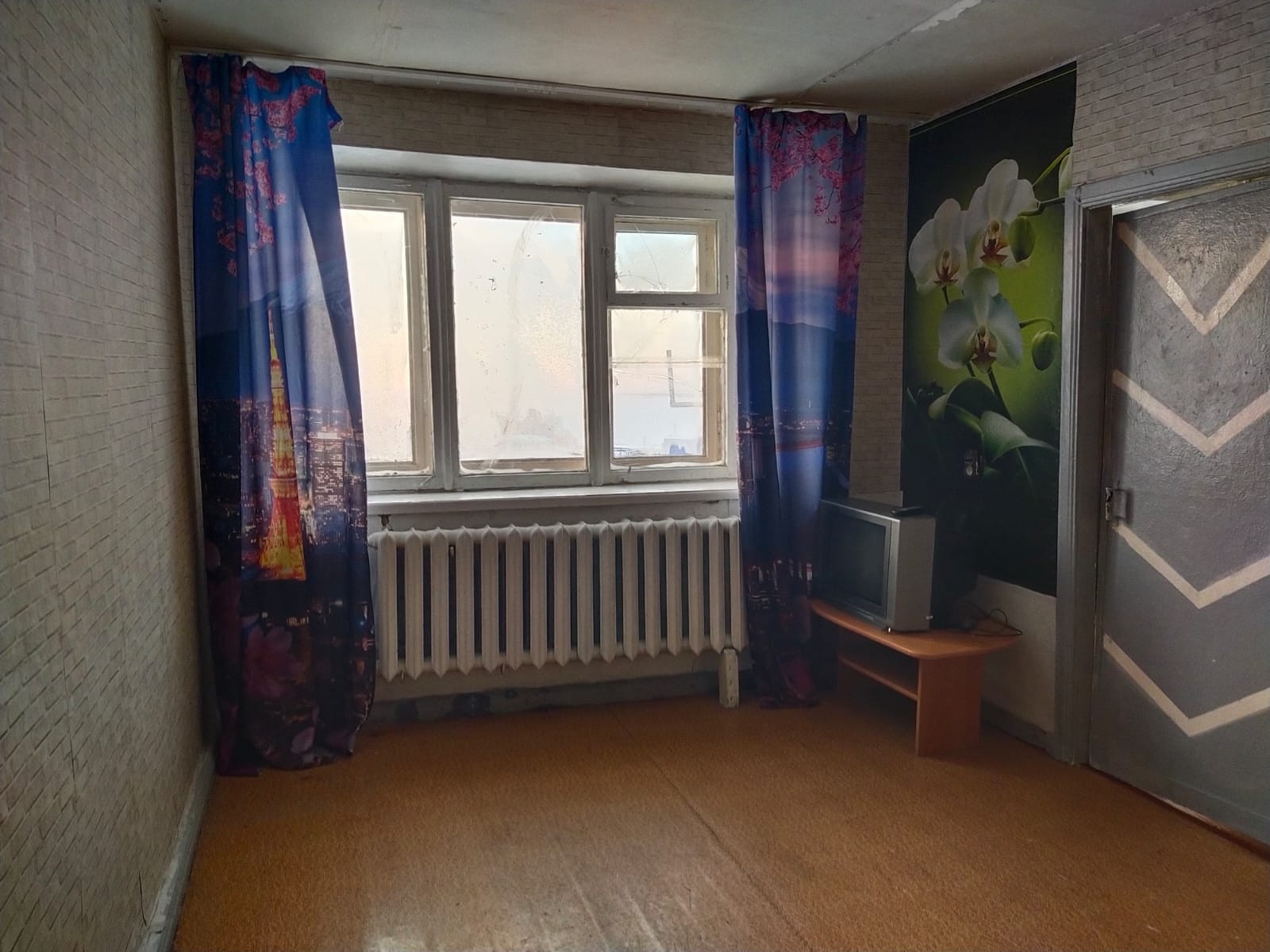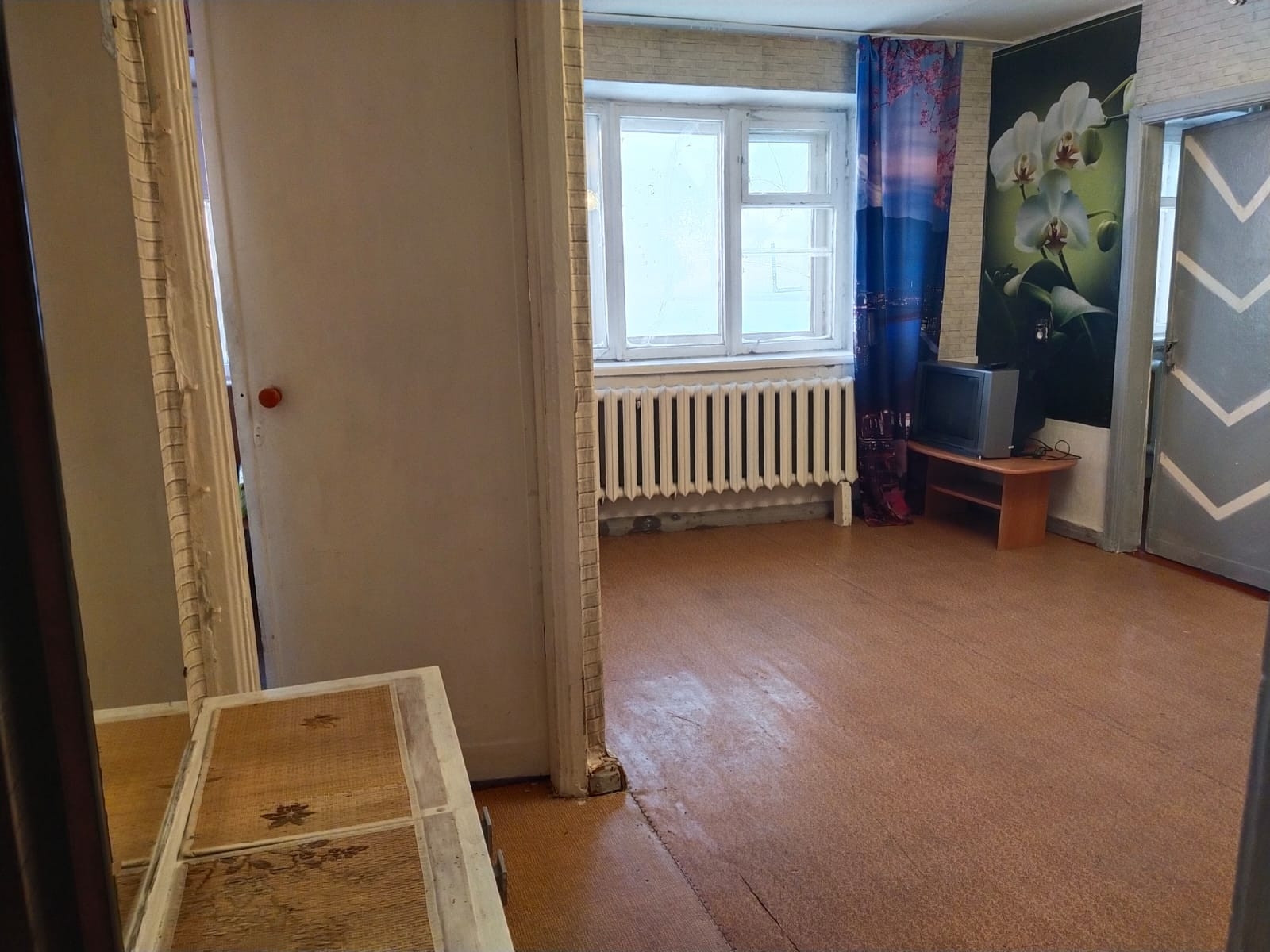 Комнаты смежные, санузел совмещён. Имеется просторная тёмная комната (кладовка).