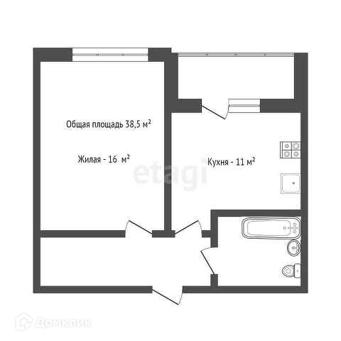 Общая площадь 38.5 м2