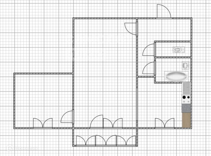 - Выход на кухню через комнату,за счет чего кухня становится больше.