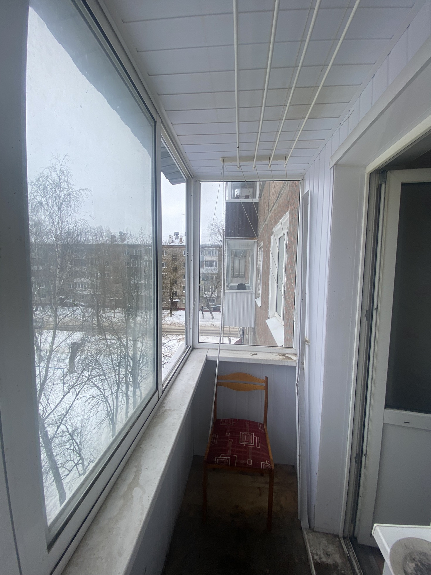 Квартира в обычном жилом состоянии.Заменены все окна на ПВХ. Комнаты смежные,остеклённый балкон.Вместительная кладовка, можно использовать как еще одну комнату. С/узел-совмещ ,ванна пласт панель , установлены приборы учёта, колонка.