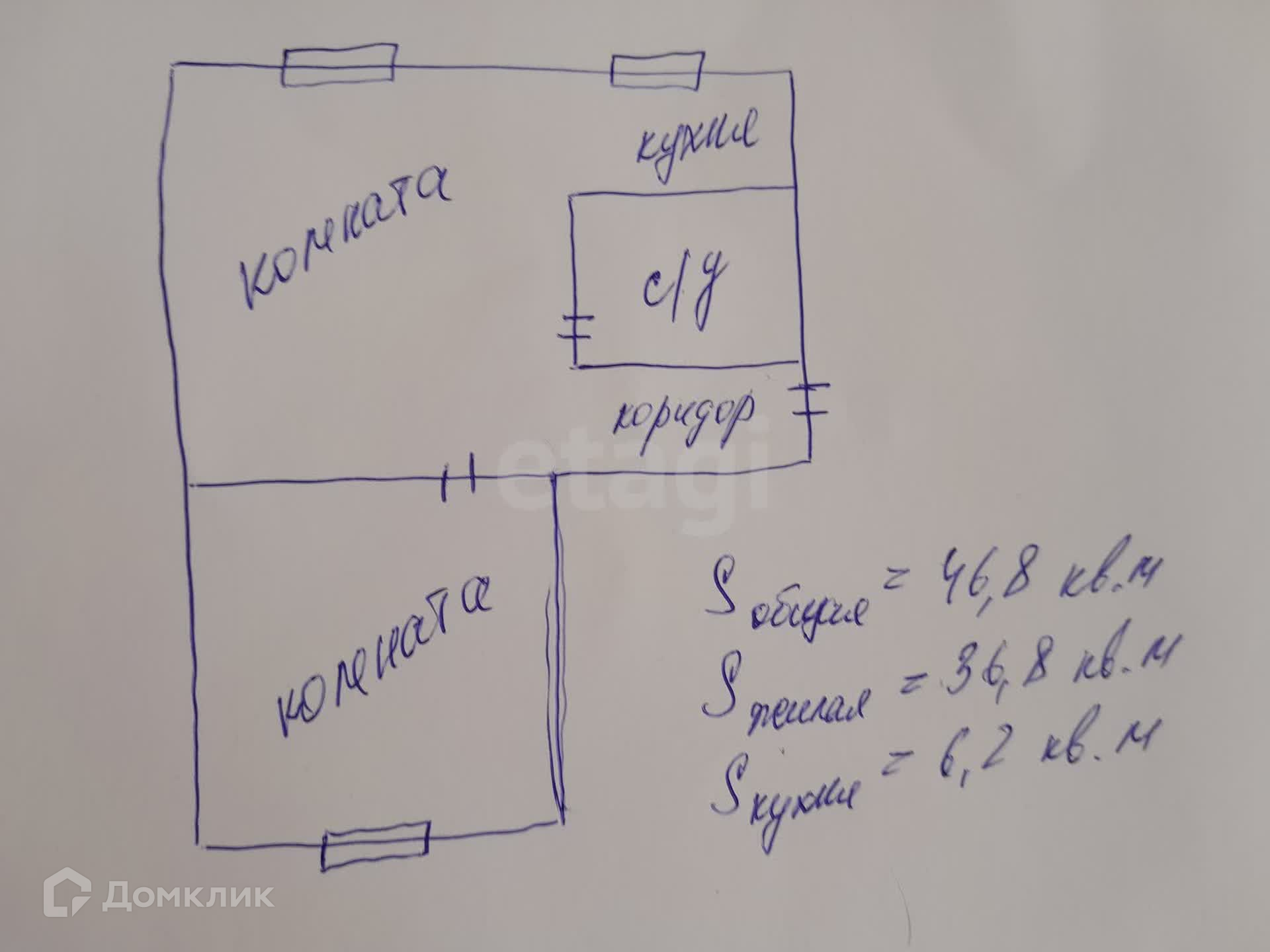 Общая площадь 46.8 м2