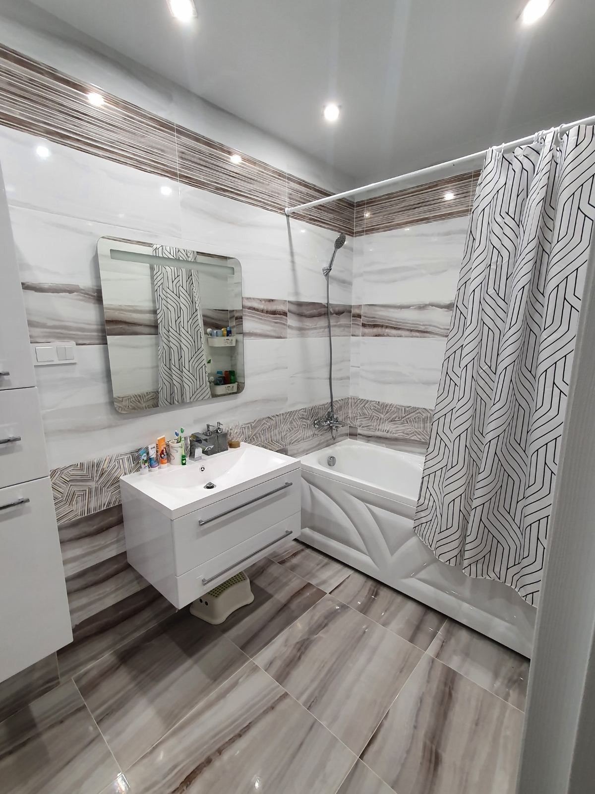 В квартире выполнен дизайнерский ремонт с использованием самых современных и дорогостоящих стройматериалов . Полы с подогревом по всей площади квартиры. Напольное покрытие кварц-виниловая плитка.