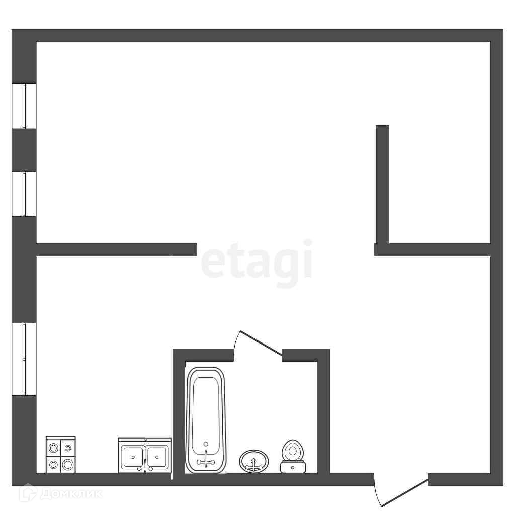 В квартире просторная комната с двумя окнами, кухня 5,8 кв.м., совмещенный сан.узел. Окна все пластиковые. Состояние сантехники, канализации, проводки исправное.