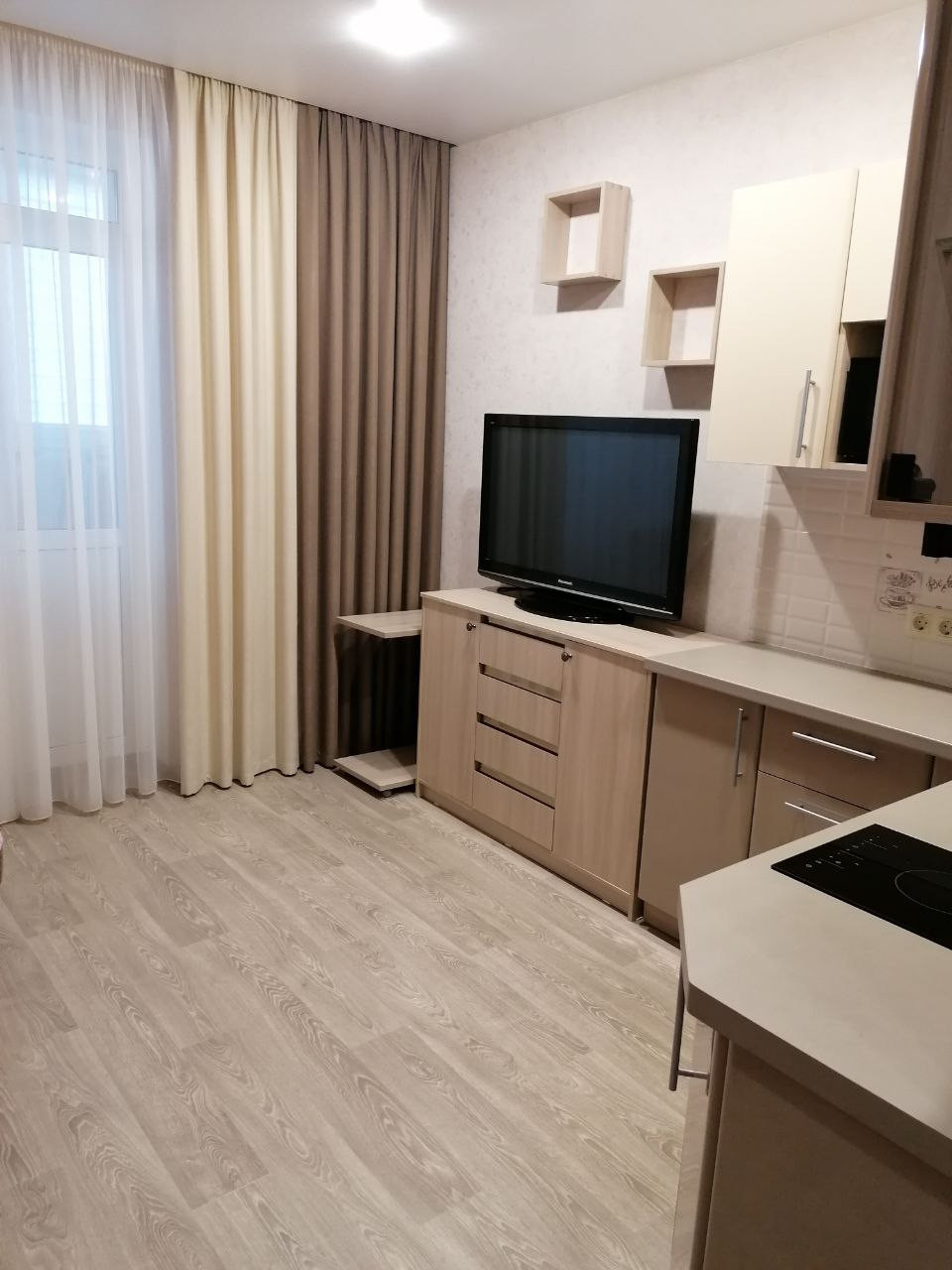 Продаю студию в новом доме  Комбрига Патолчева 31г, 4 эт, балкон, евроремонт, остается вся мебель , техника.Встроенный кухонный уголок, холодильник, телевизор,микроволновка, сенсорная плита,с/у кафель,новая умная сантехника с подсветками, душ, стир. маш.,балкон/пластик, шкафчики,в прихожей раздевалка, все оформлено в одном стиле. инфраструктура вся в наличии. чистая продажа. Переезд в другой город. Никто не зарегистрирован. 1 собств.