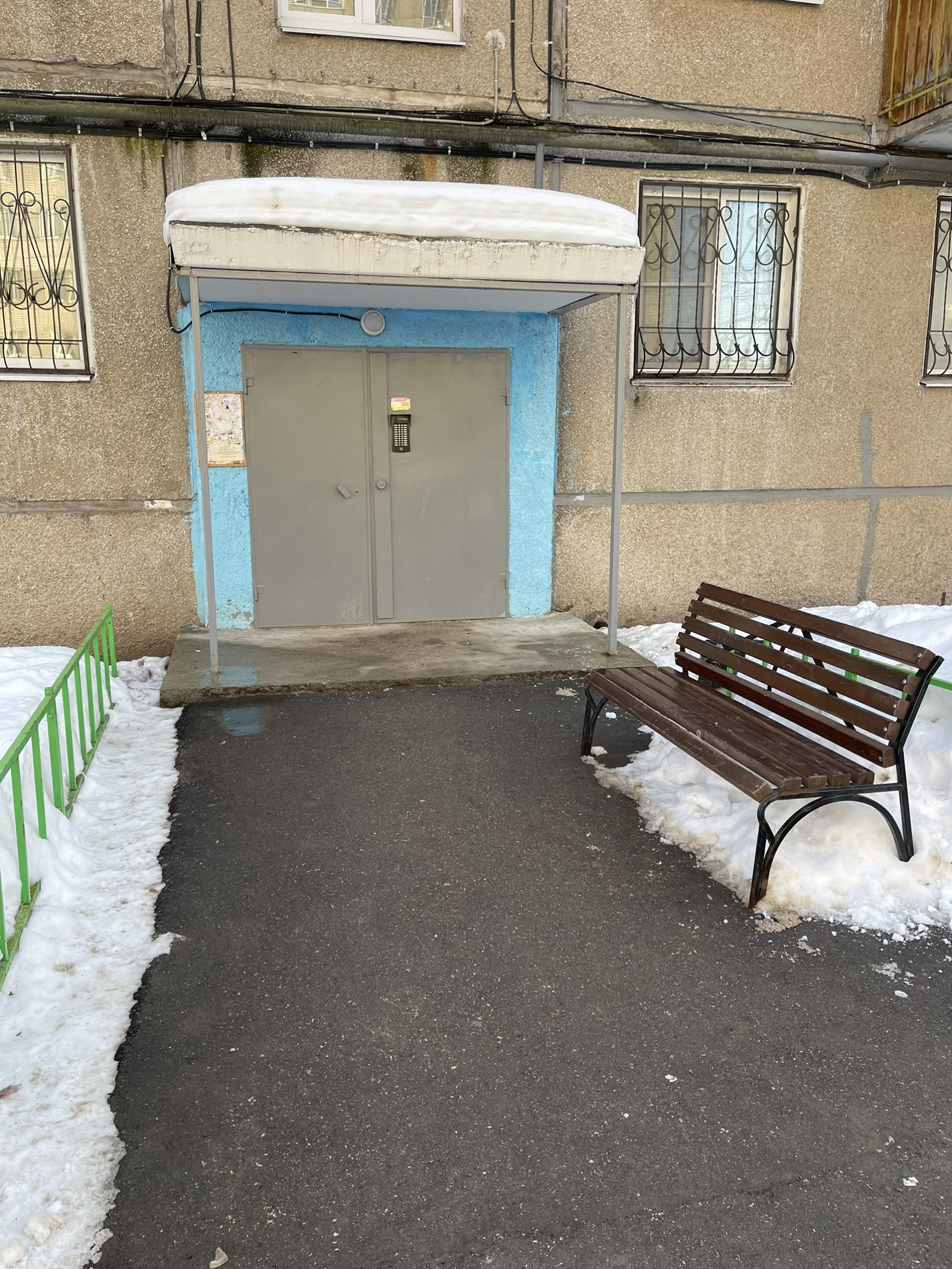 - во дворе асфальтированная парковка, детская площадка, чистый двор