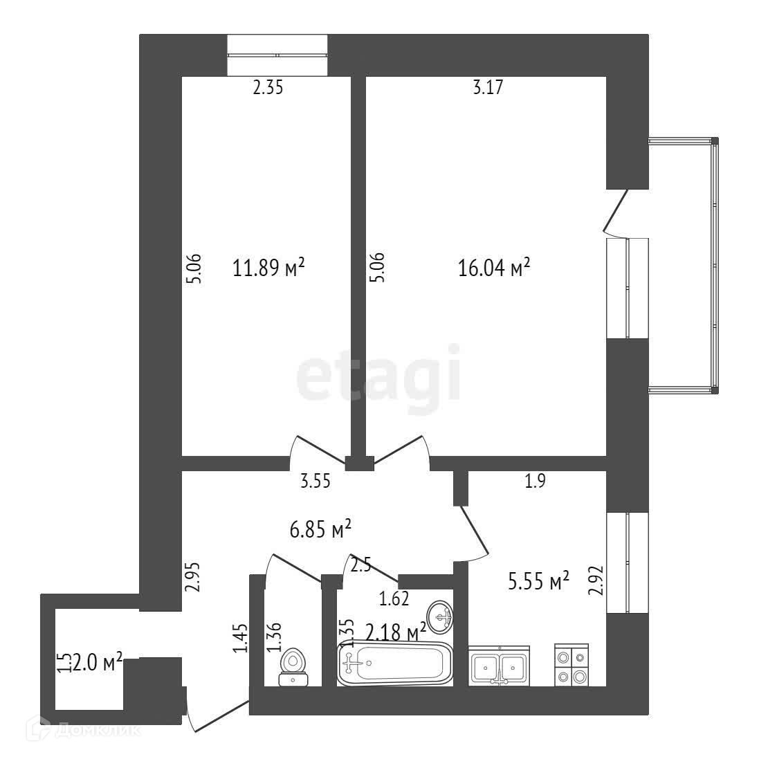 Общая площадь 45 м2