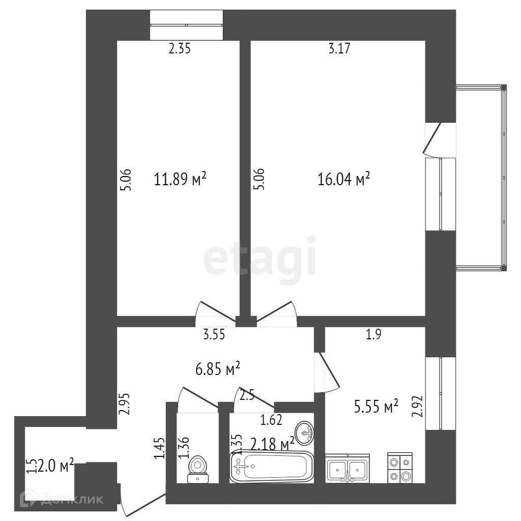 Балкон, лоджия 1 балкон