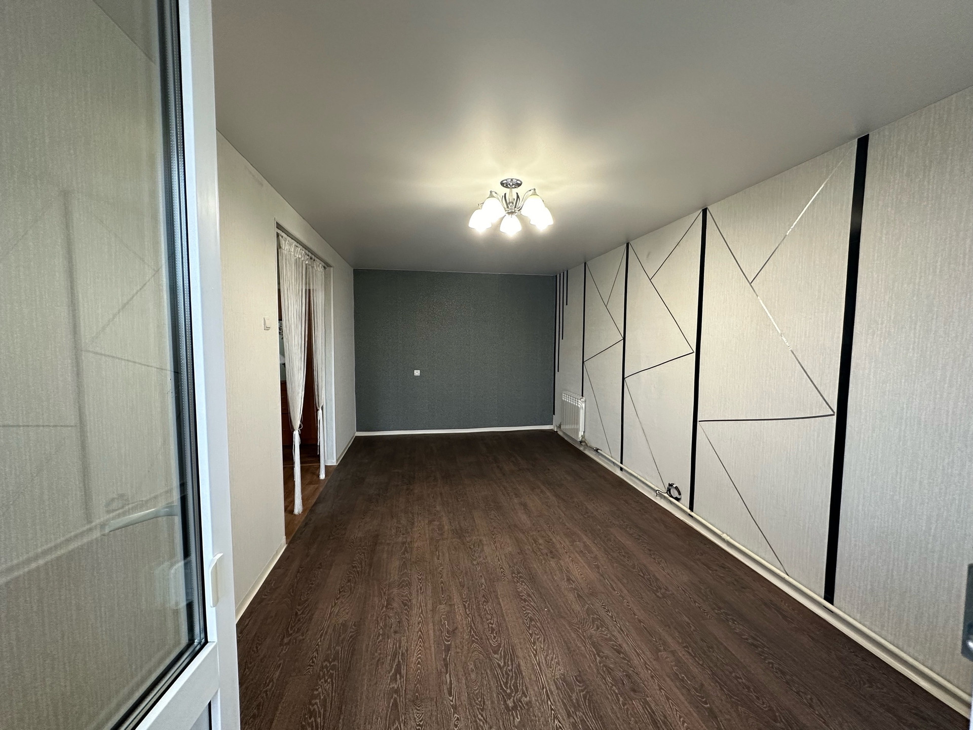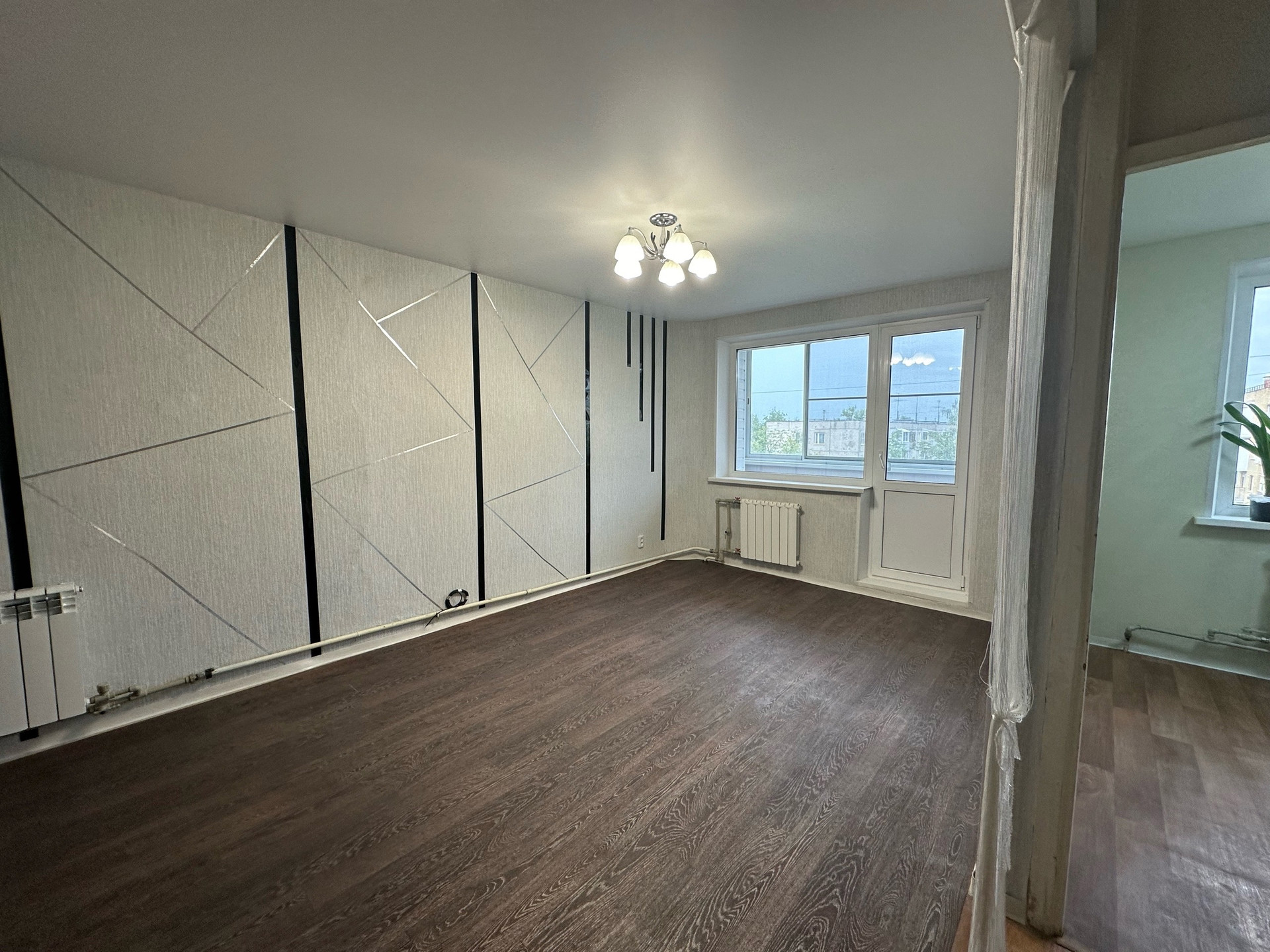 - квартира не угловая, балкон застеклен пластиком,