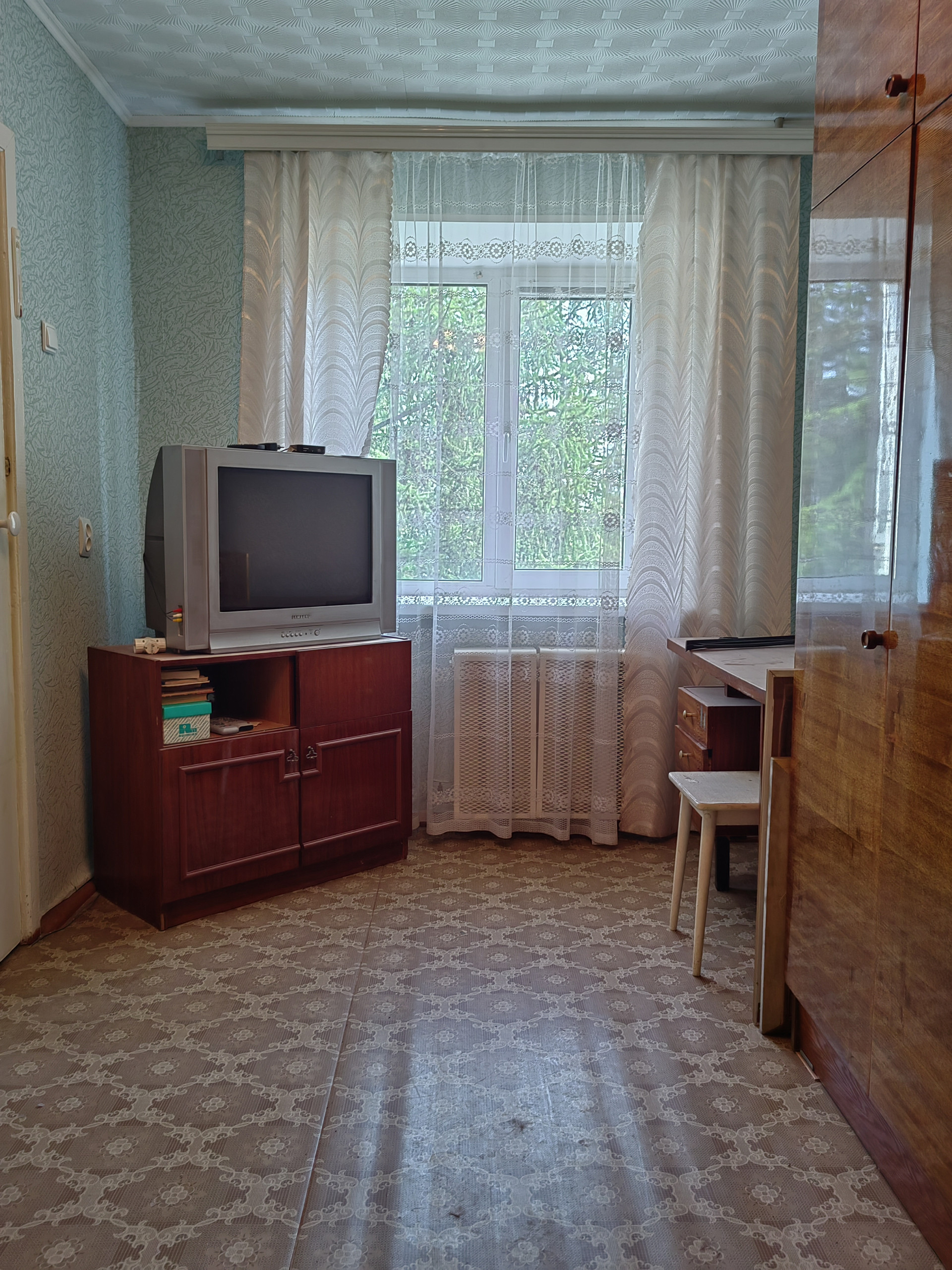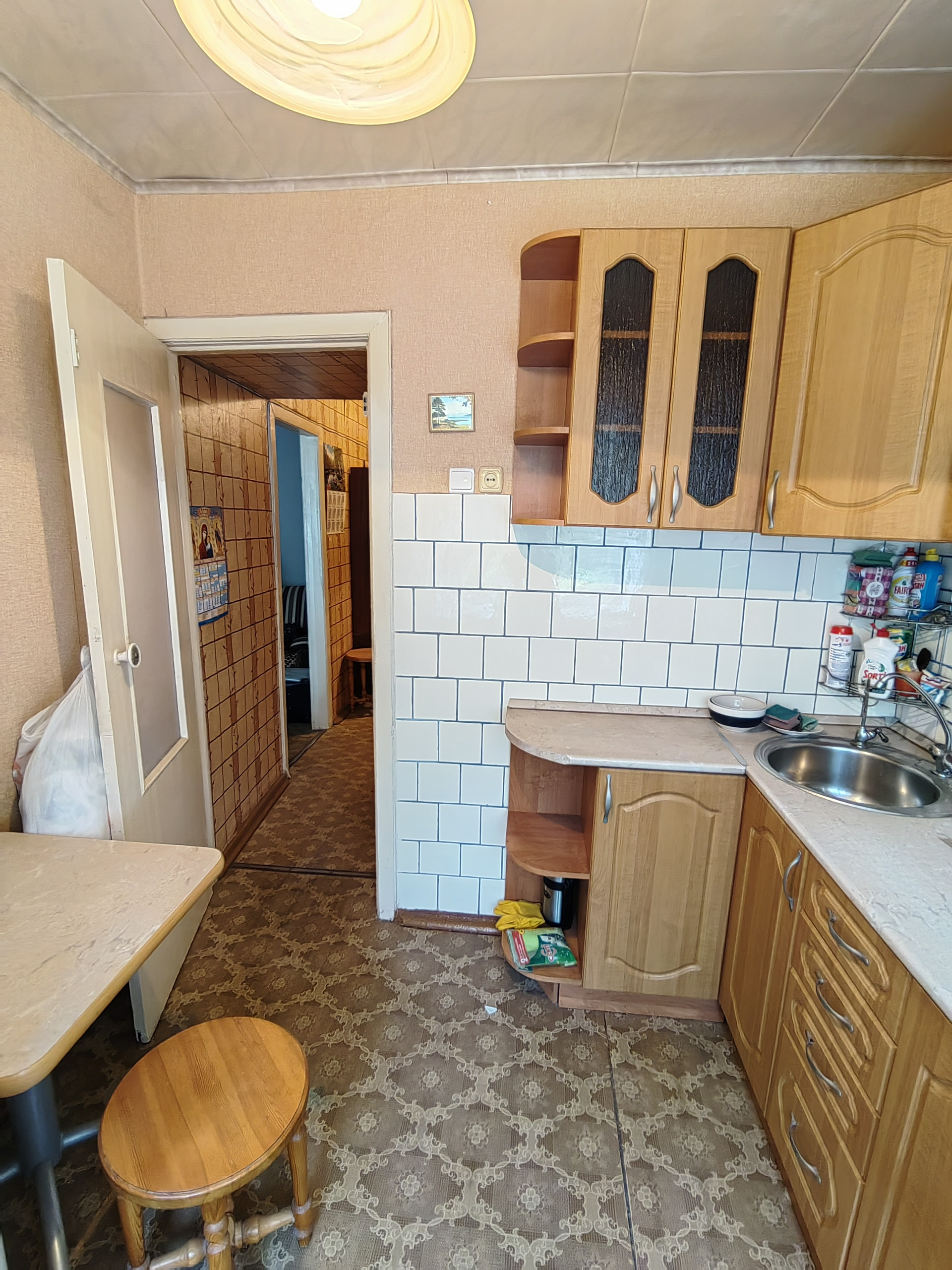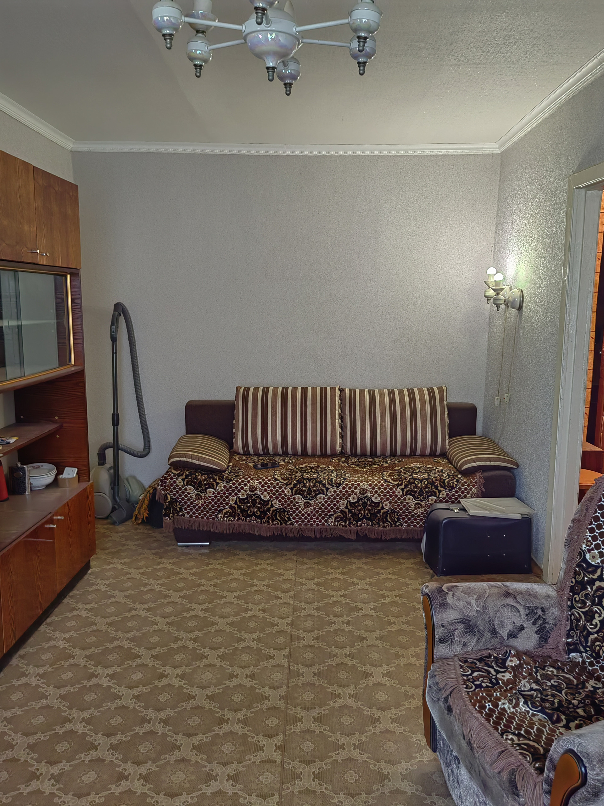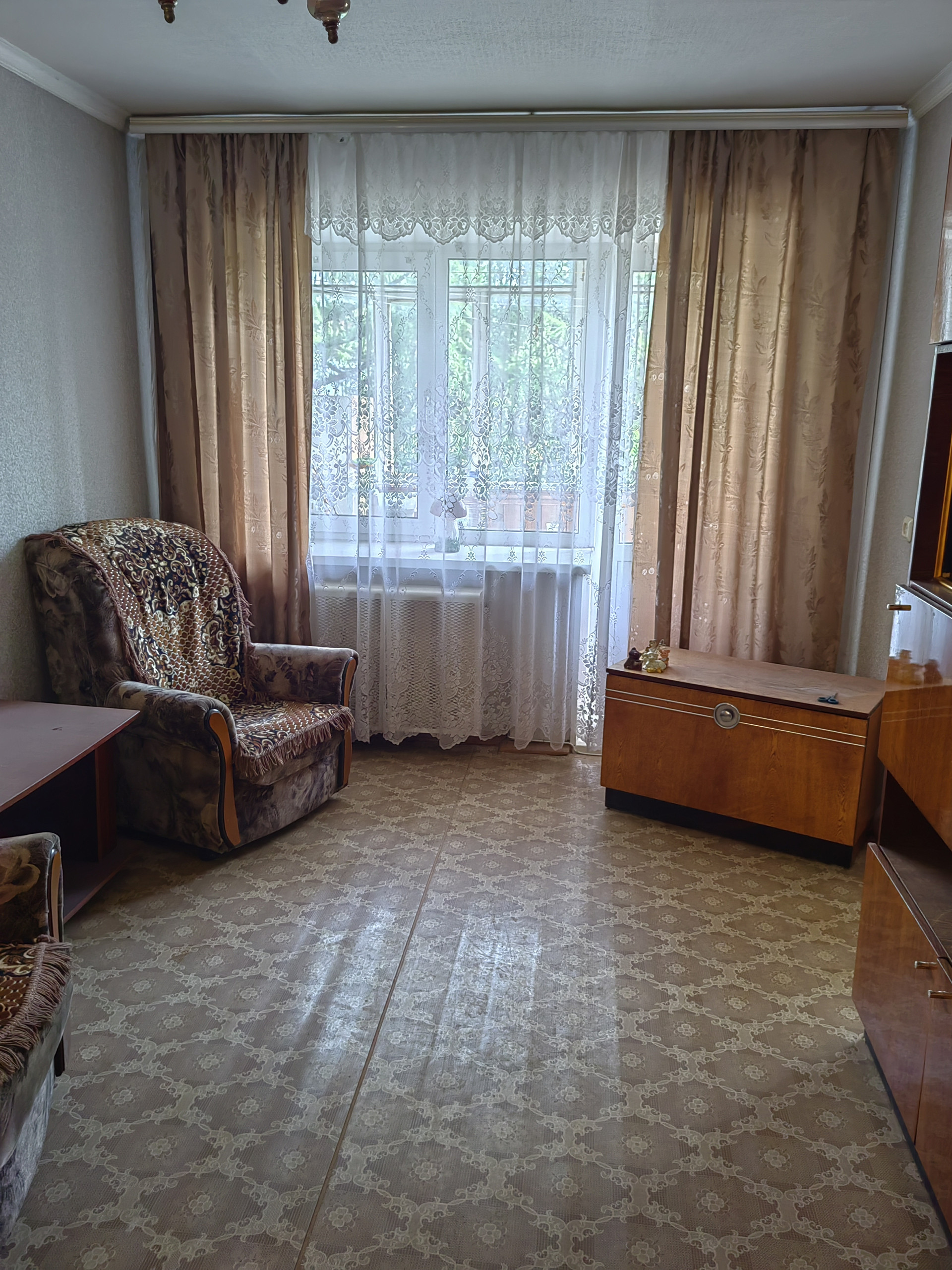 2 хр., есть кладовка, с балконом (застеклен), состояние простое, никто не прописан, долгов нет, подходит под любой вид расчета