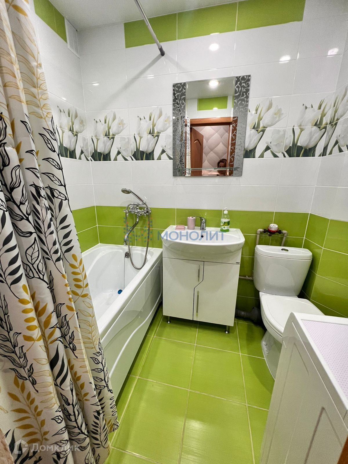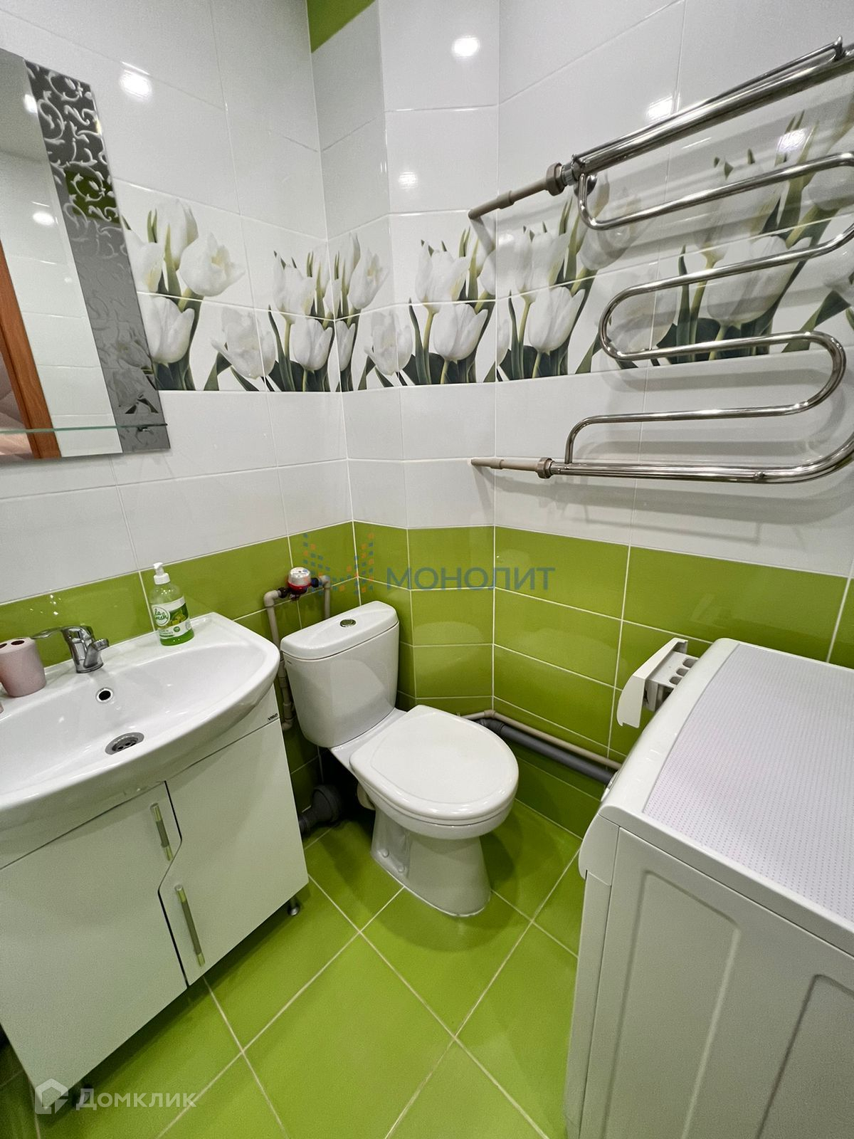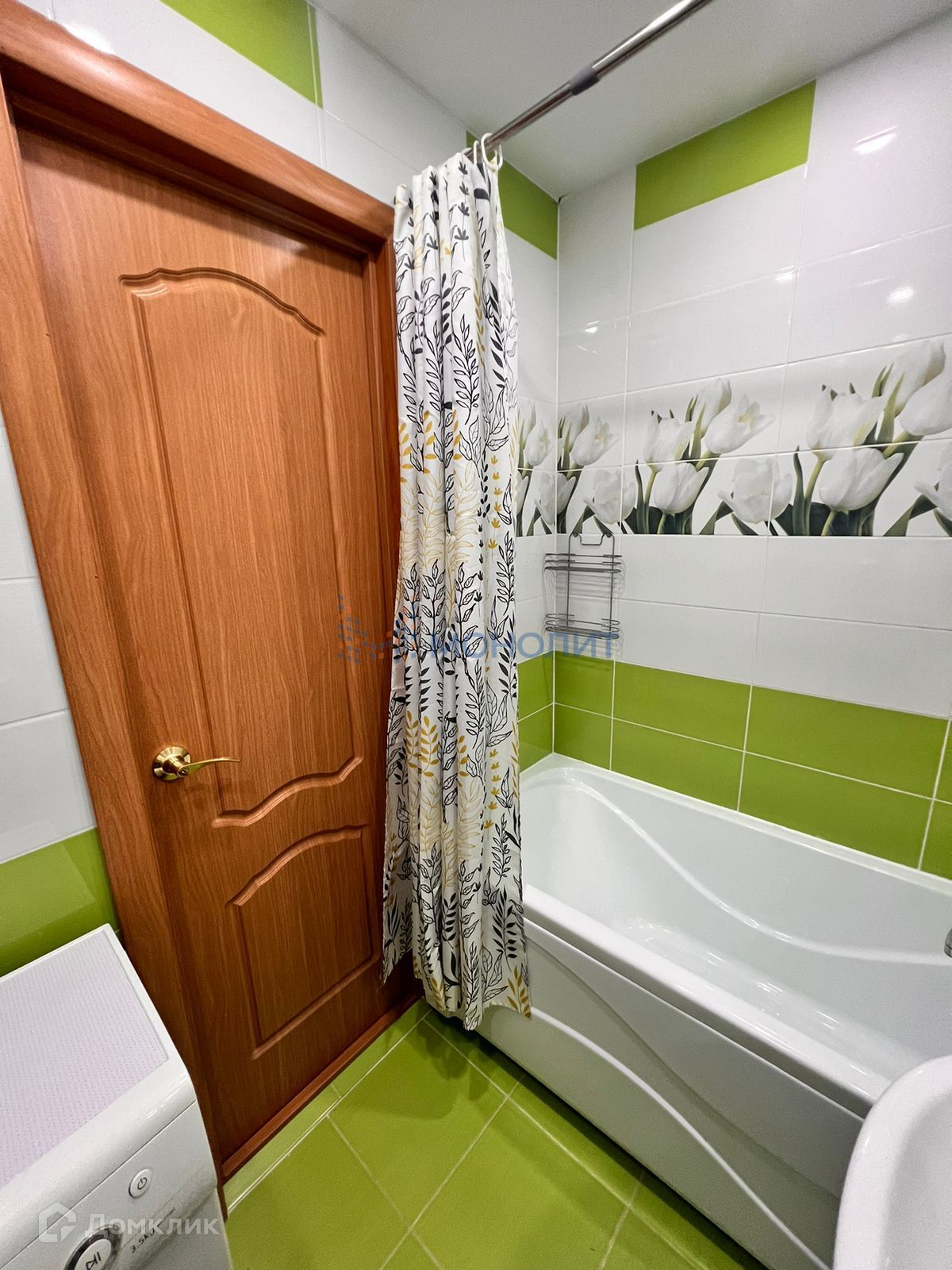Санузел в кафеле, акриловая ванна, поменян полотенцесушитель, установлены хорошие смесители.
