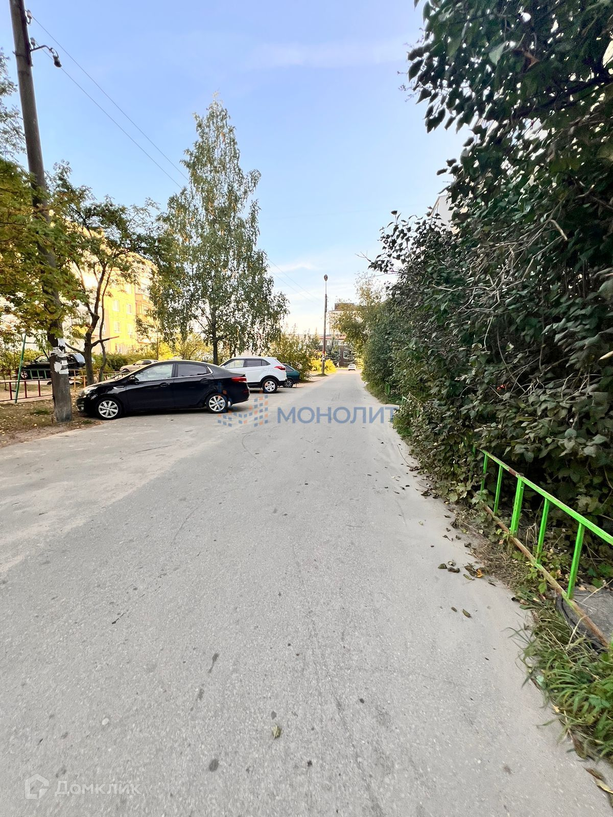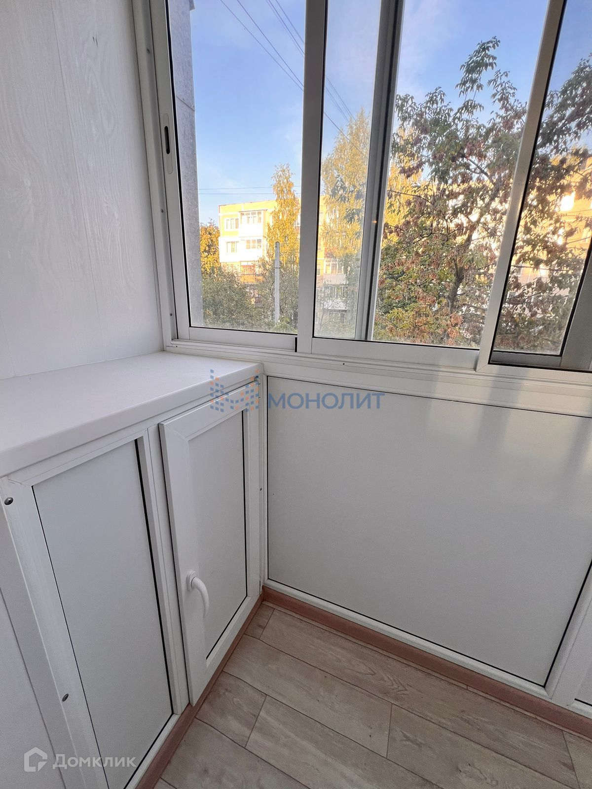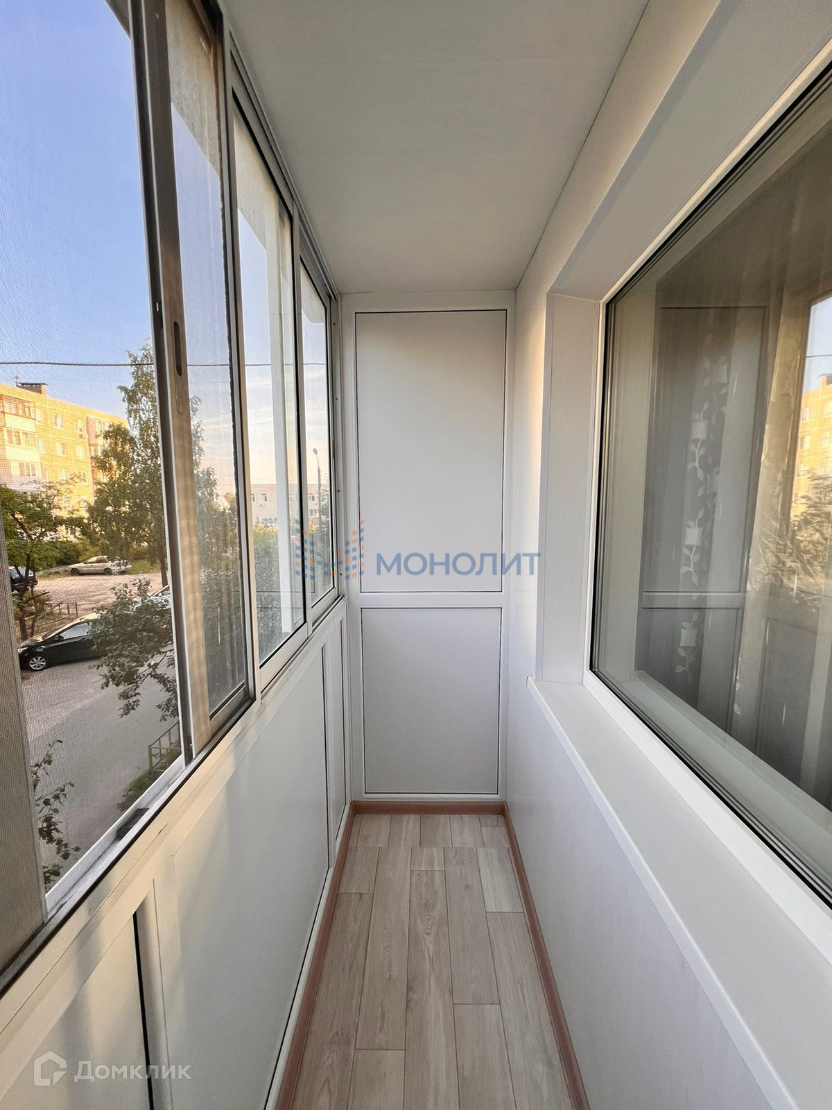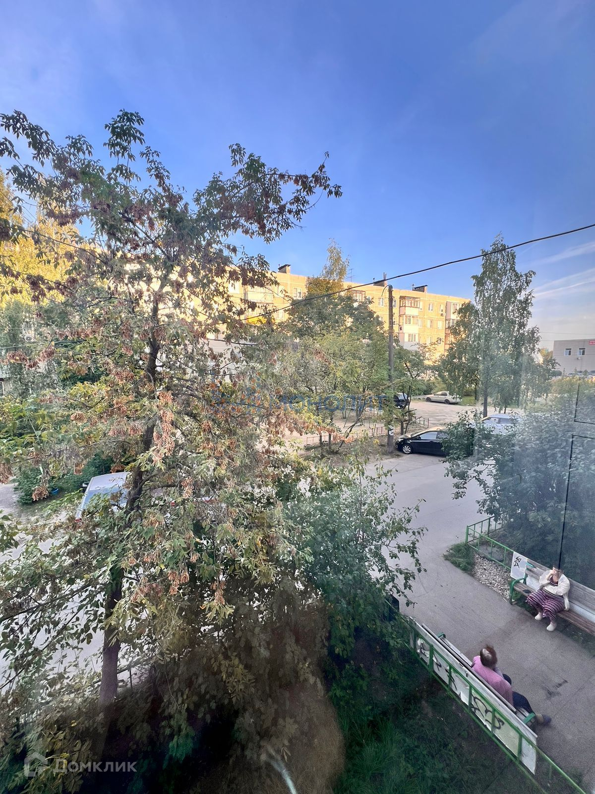 Окна квартиры выходят на зеленый двор.