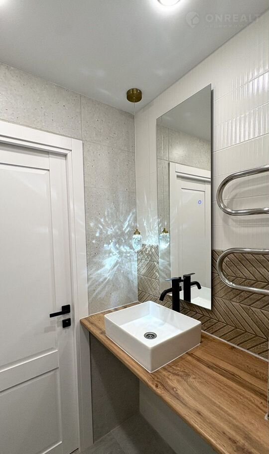 Совмещенный сан узел, под столешницей место для стиральной машины.