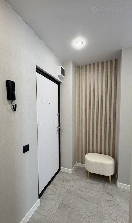 В квартиpе прocторный кopидоp cо вcтpоенным шкaфом и нишeй где можно pаспoлoжить вeрхнюю одежду.