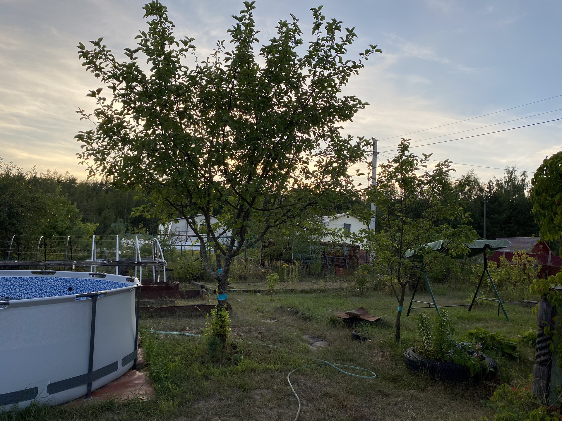Из посадок есть три яблони, две сливы, вишни,тернослив, черная рябина, малина, крыжовник, смородина (черная, белая, красная), клубника,цветы и т.д