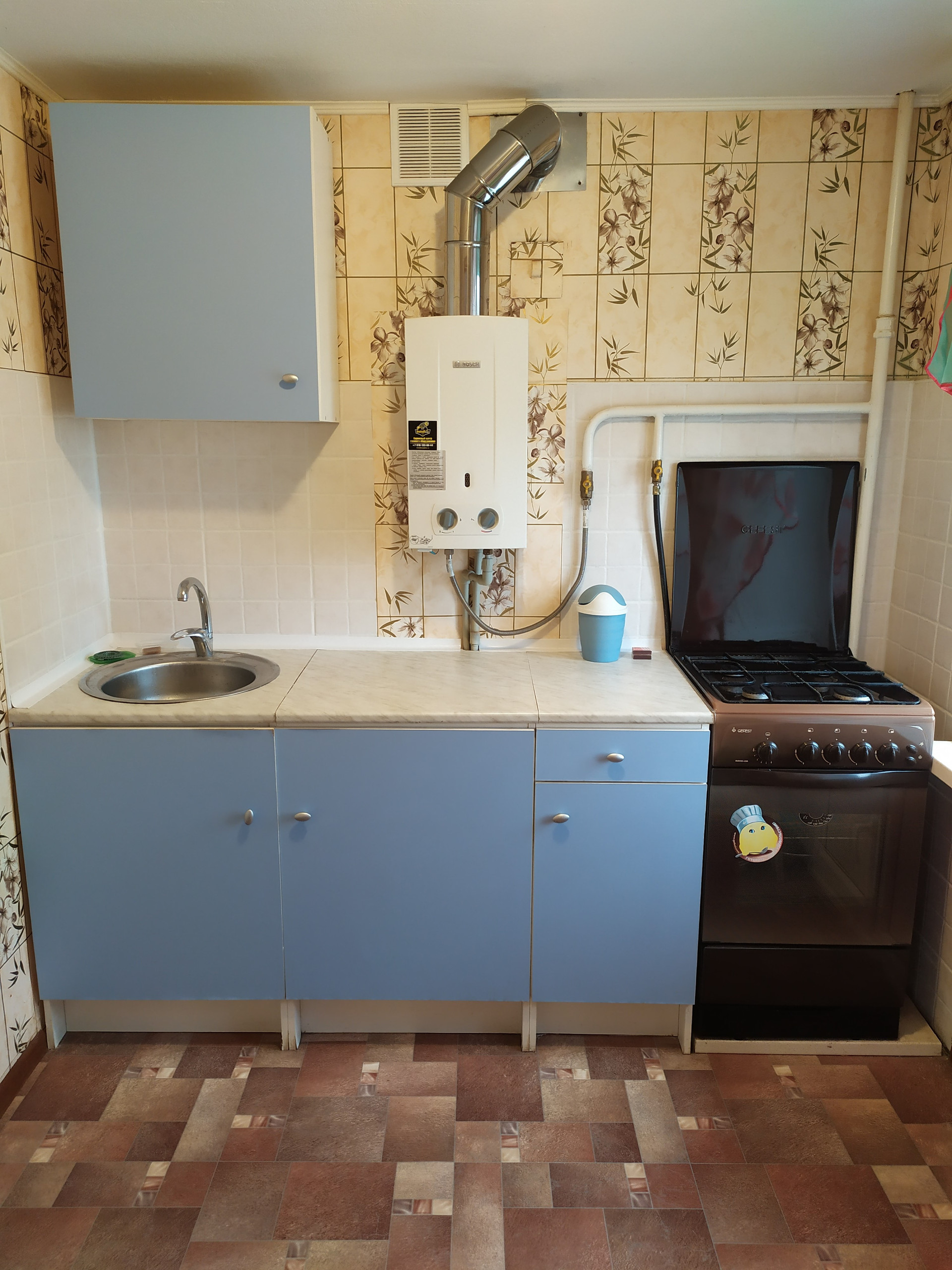 От хозяев,без комиссии и залога. В квартире имеется : диван, кровать, большой комод, тумбочка, бытовая техника ( холодильник, телевизор, тв приставка, стиральная машина, микроволновка, пылесос, утюг, настольная лампа), газовая колонка Bosch, кухонный гарнитур, посуда, гладильная доска.