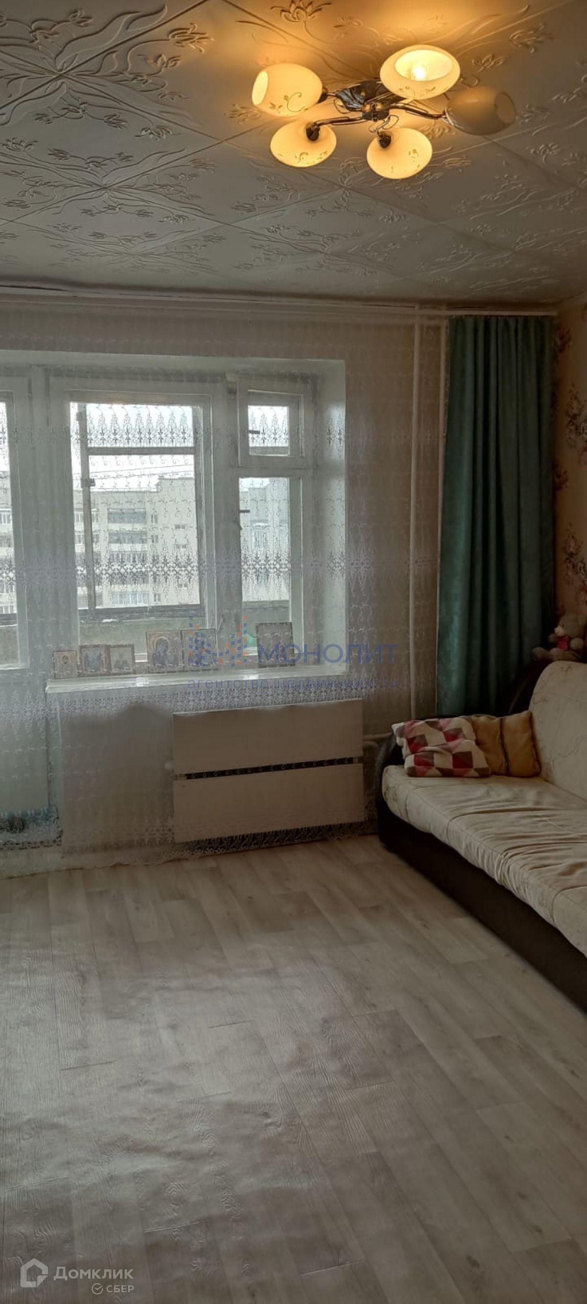 Квартира очень теплая в нормальном жилом состоянии с типовым ремонтом. Без техники.