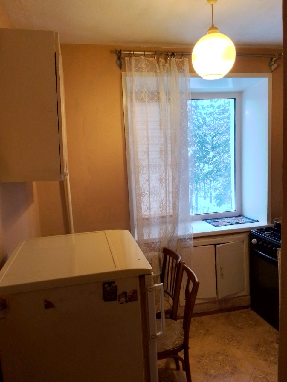 окна пластик, чистая, есть стиральная машинка, холодильник, мебель на кухне, спальное место диван