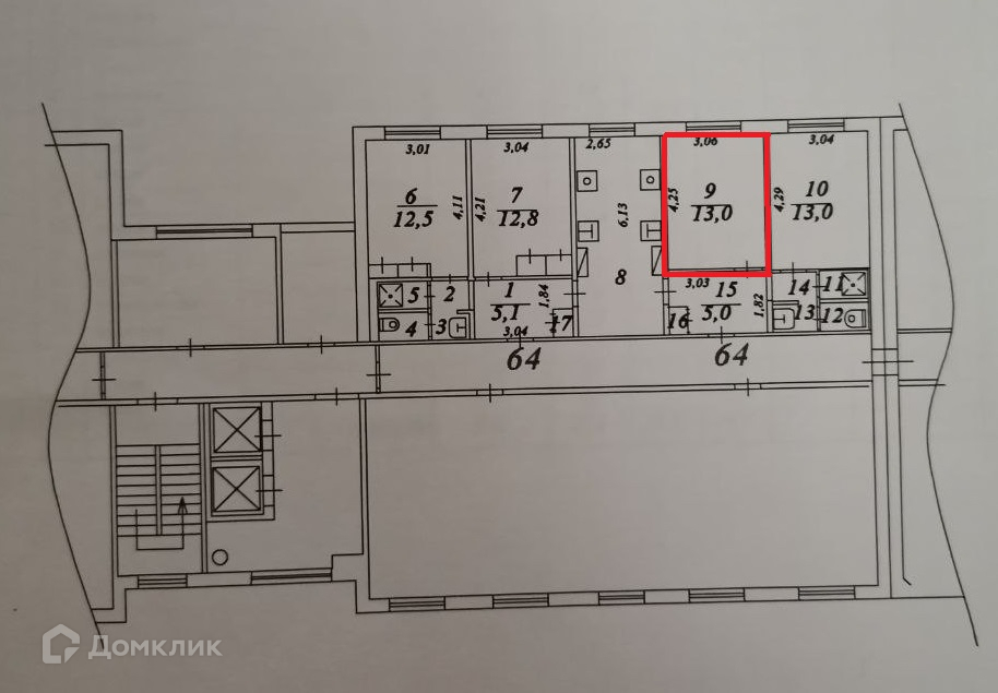 Жилая площадь 13 м2