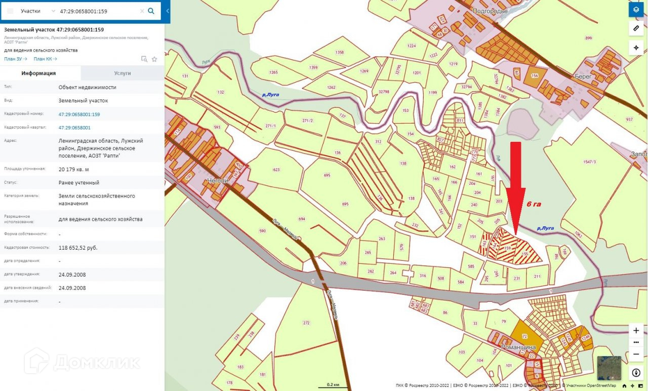 №314476 Предлагается к продаже 4 участка,общей площадью​​​​​​​ 6 га,расположенных по адресу:Ленинградская область, Лужский муниципальный район, Дзержинское сельское поселение,АОЗТ `Рапти`. Берег реки Луга, 300 м до ж\д платформы `14 км.`,2 км. до деревни Чеголи. Хороший подъезд к участкам.Сельхоз назначения.1200000 цена за все 4 участка.