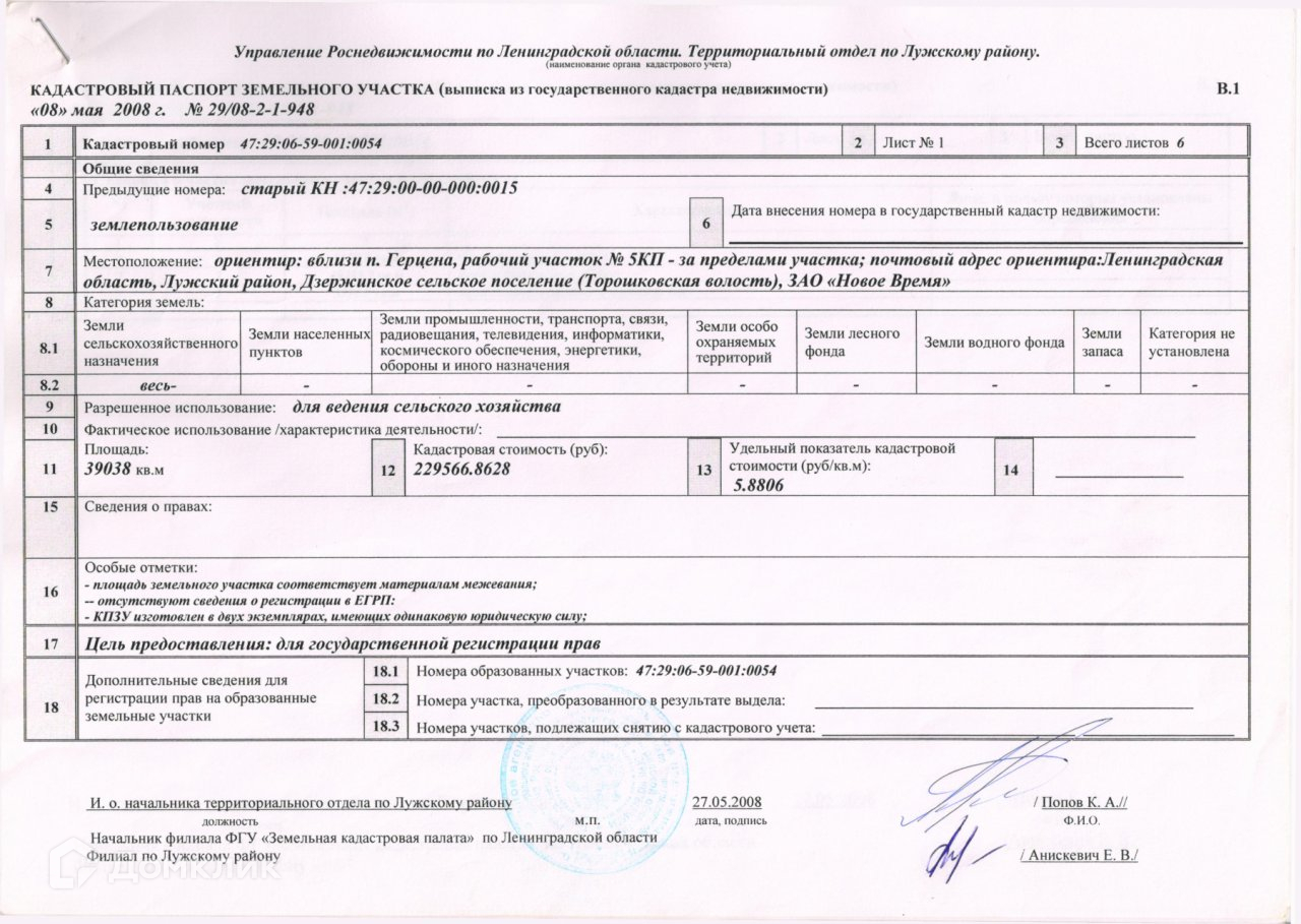 №321996 Продается земельный участок для ведения сельского хозяйства, расположен по адресу:  Ленинградская область, Лужский район, Дзержинское сельское поселение, вблизи п. Герцена, рабочий участок № 5КП.