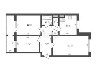 Общая площадь: 51.6 м2