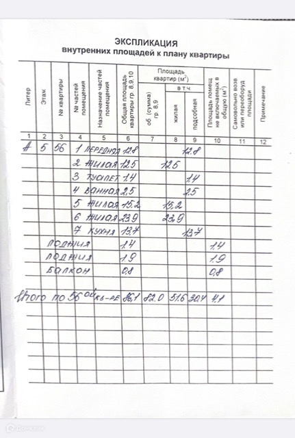 Жилая площадь 51.6 м2