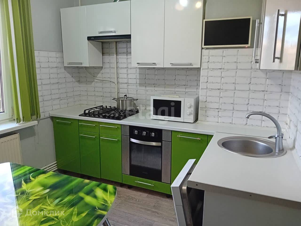 В стоимость входит вся мебель на фото и бытовая техника: посудомоечная машина, варочная панель, вытяжка, духовой шкаф, холодильник, стиральная машина, кондиционер. Телевизоры, компьютер, микроволновая печь в стоимость не входят!