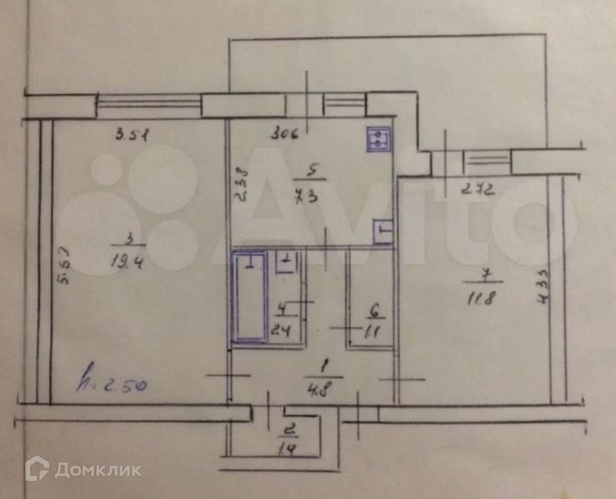 Высота потолков 2.5 м