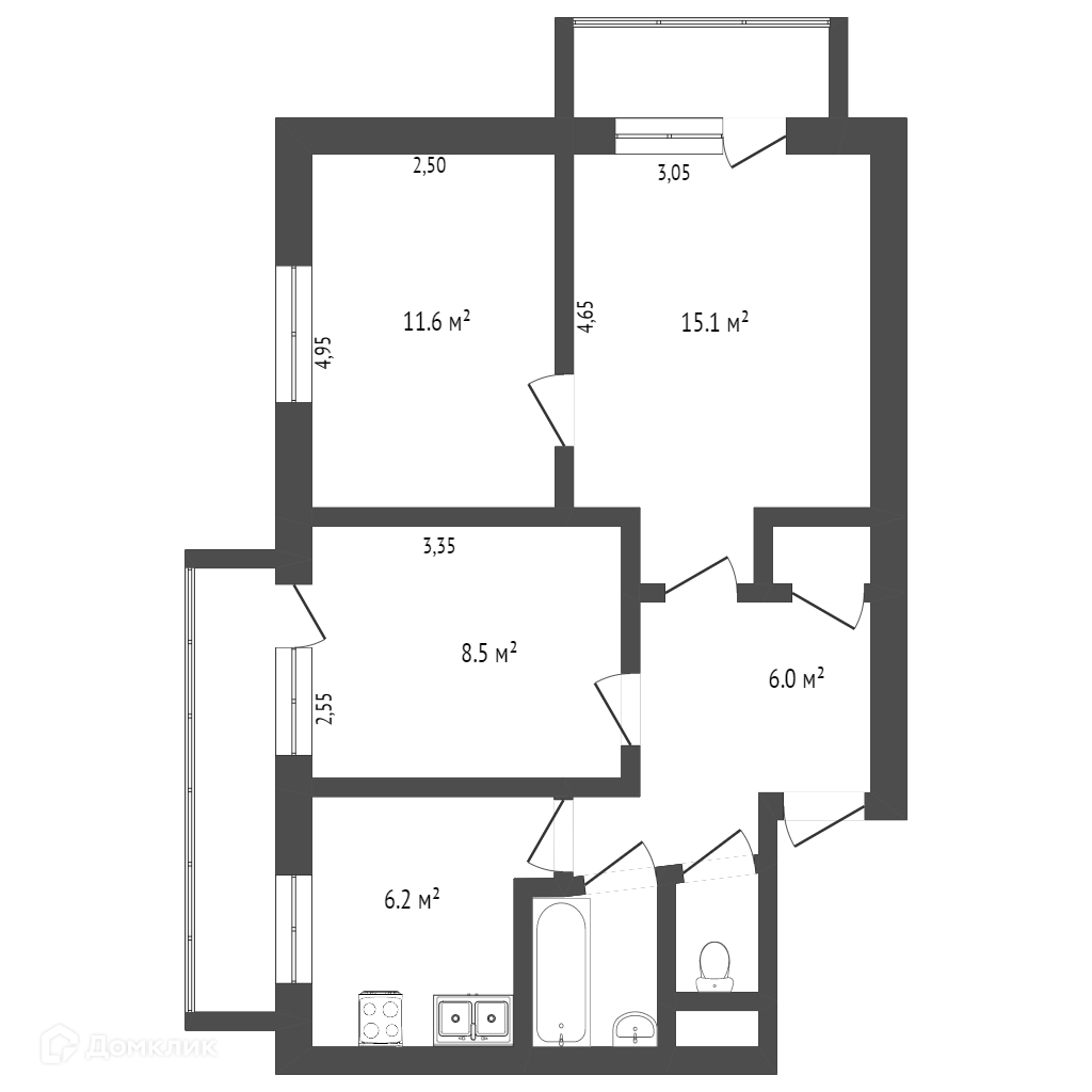 Количество комнат 3