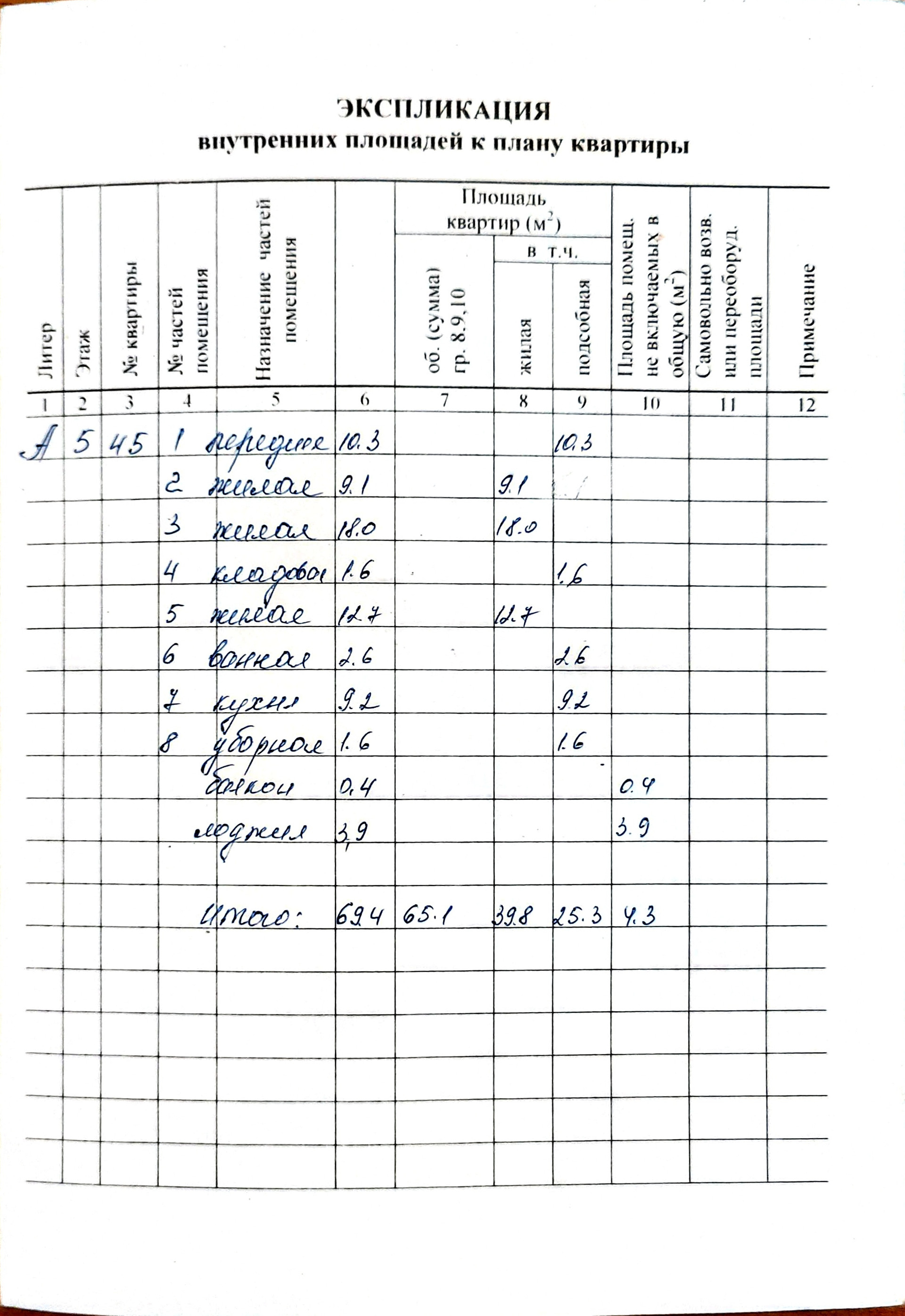 Общая площадь 69.4 м2
