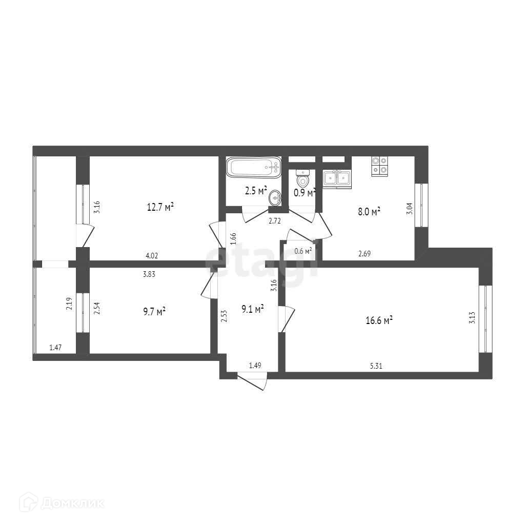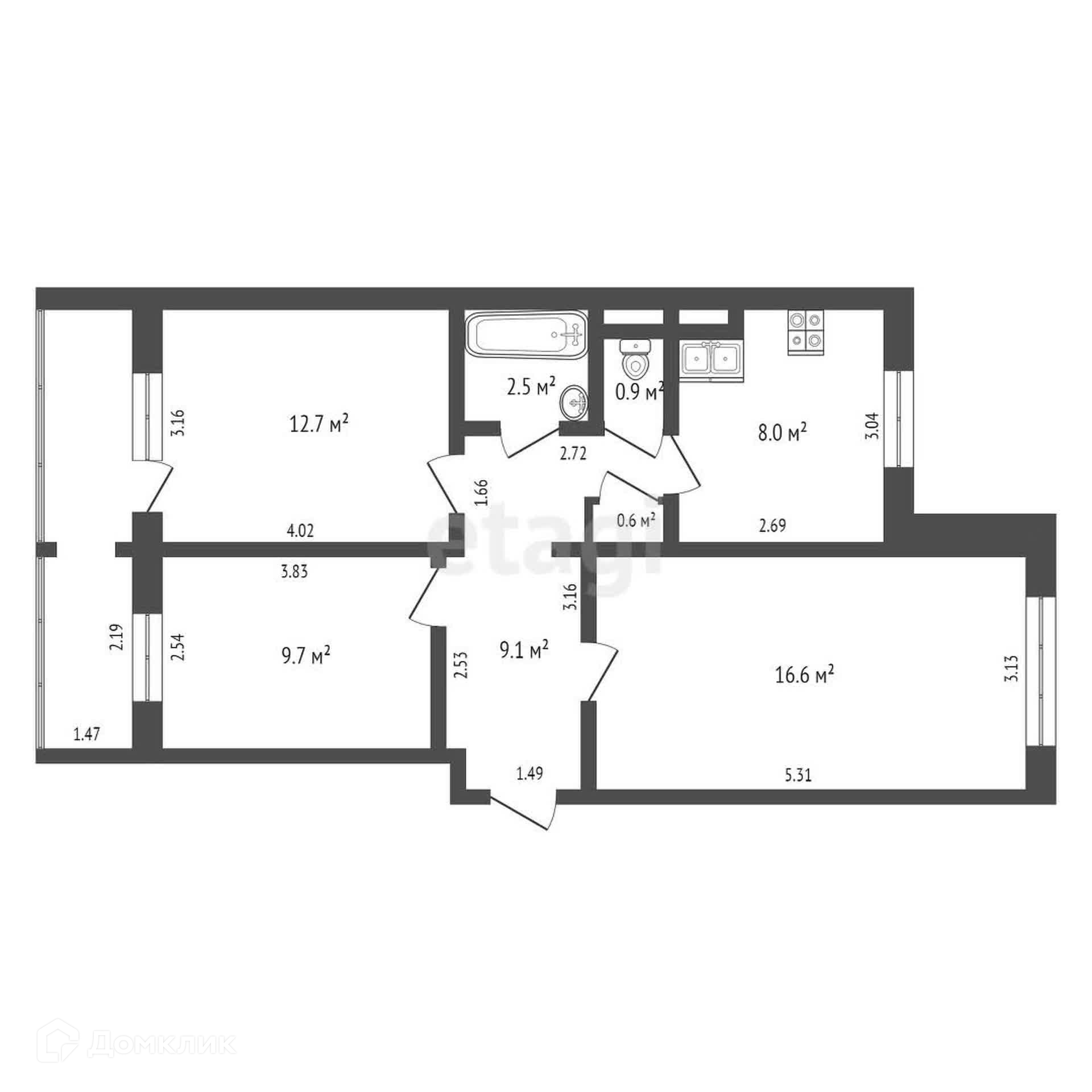 Общая площадь 59.7 м2