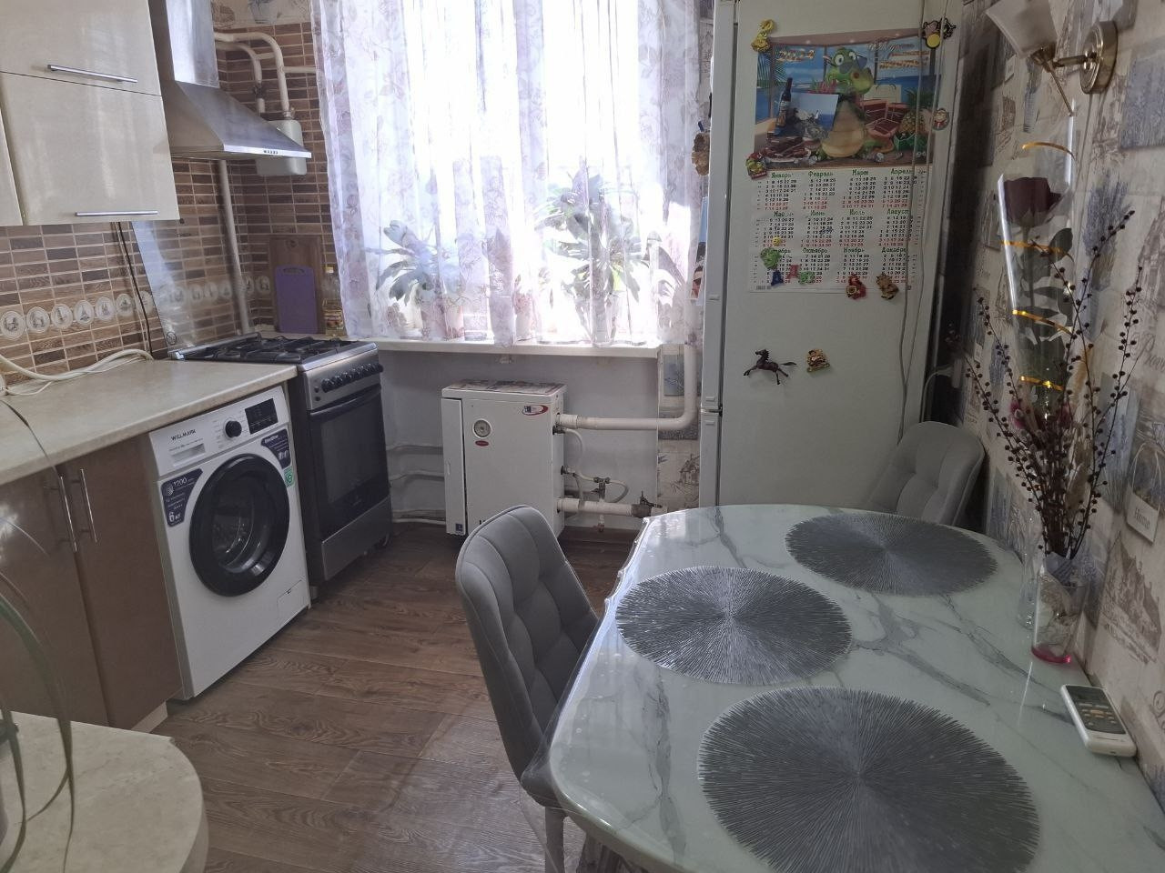 Продается квартира  центре города на четвертом этаже, не угловая, очень теплая, светлая, в доме имеется лифт. Рядом вокзал, парк, рынок, шлолы, детские сады. В квартире автономное отопление, бойлер, теплый пол в ванне, просторная кухня с мебелью.