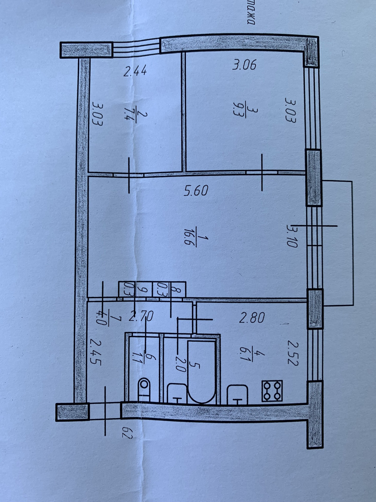 Балкон, лоджия 1 балкон