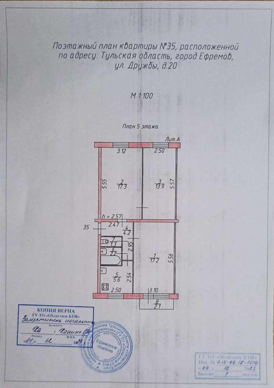 3-комнатная квартира, 61.7 м2, этаж 5 / 5, на продажу в Ефремове, улица Дружбы, 20
