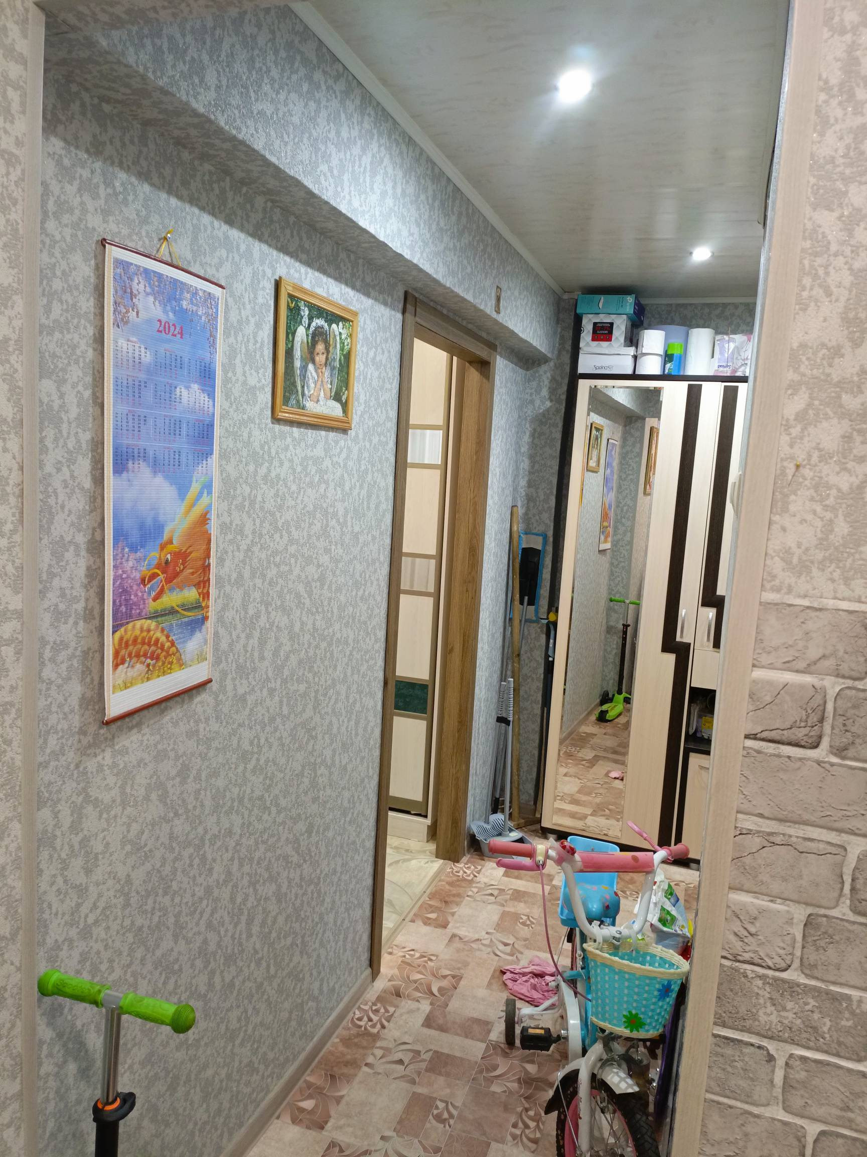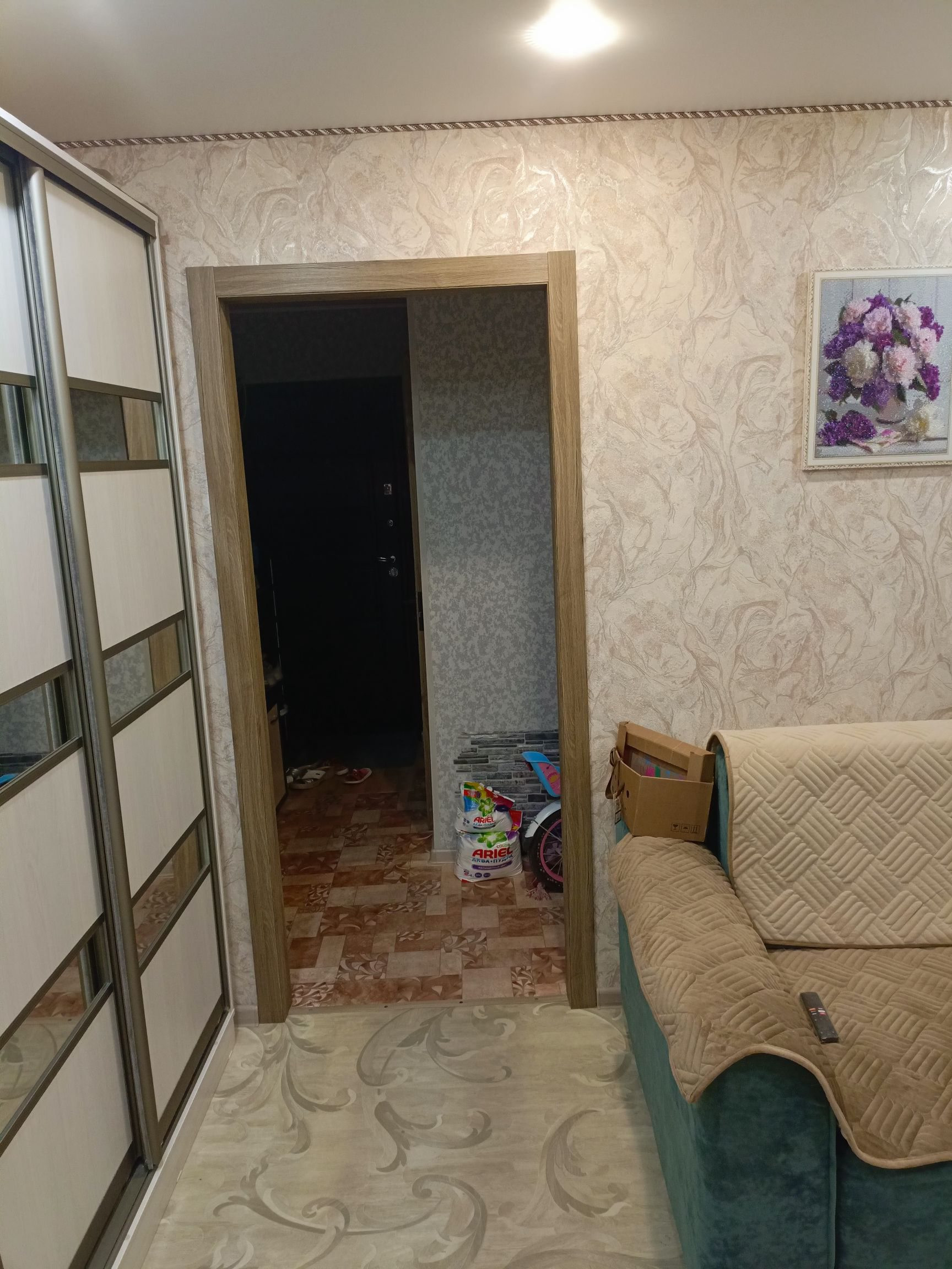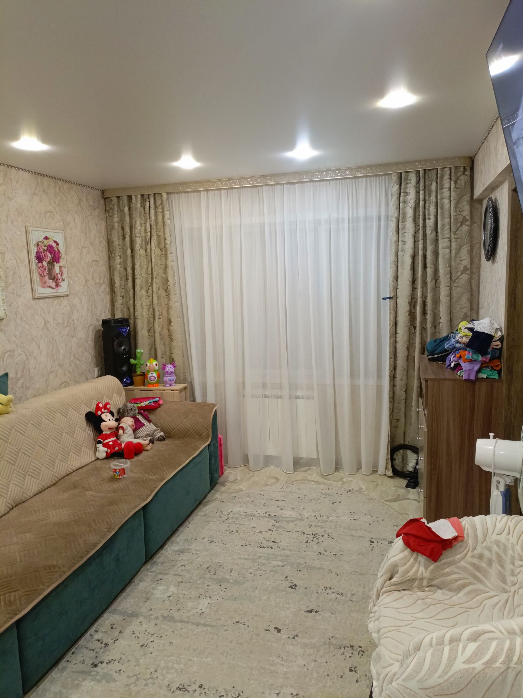 Квартира светлая и теплая парковочное место во дворе. Окна выходят во двор дома. Рядом находятся сад,школа, парк, почта, магазины, детская площадка. В квартире в зале натяжной потолок, заменены радиаторы отопления, пластиковые окна, новая дверь в санузле, порталы в комнаты. Кухню оставляем новым хозяевам.