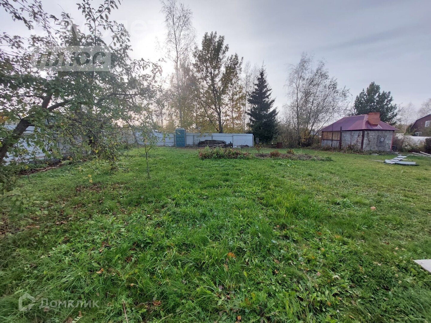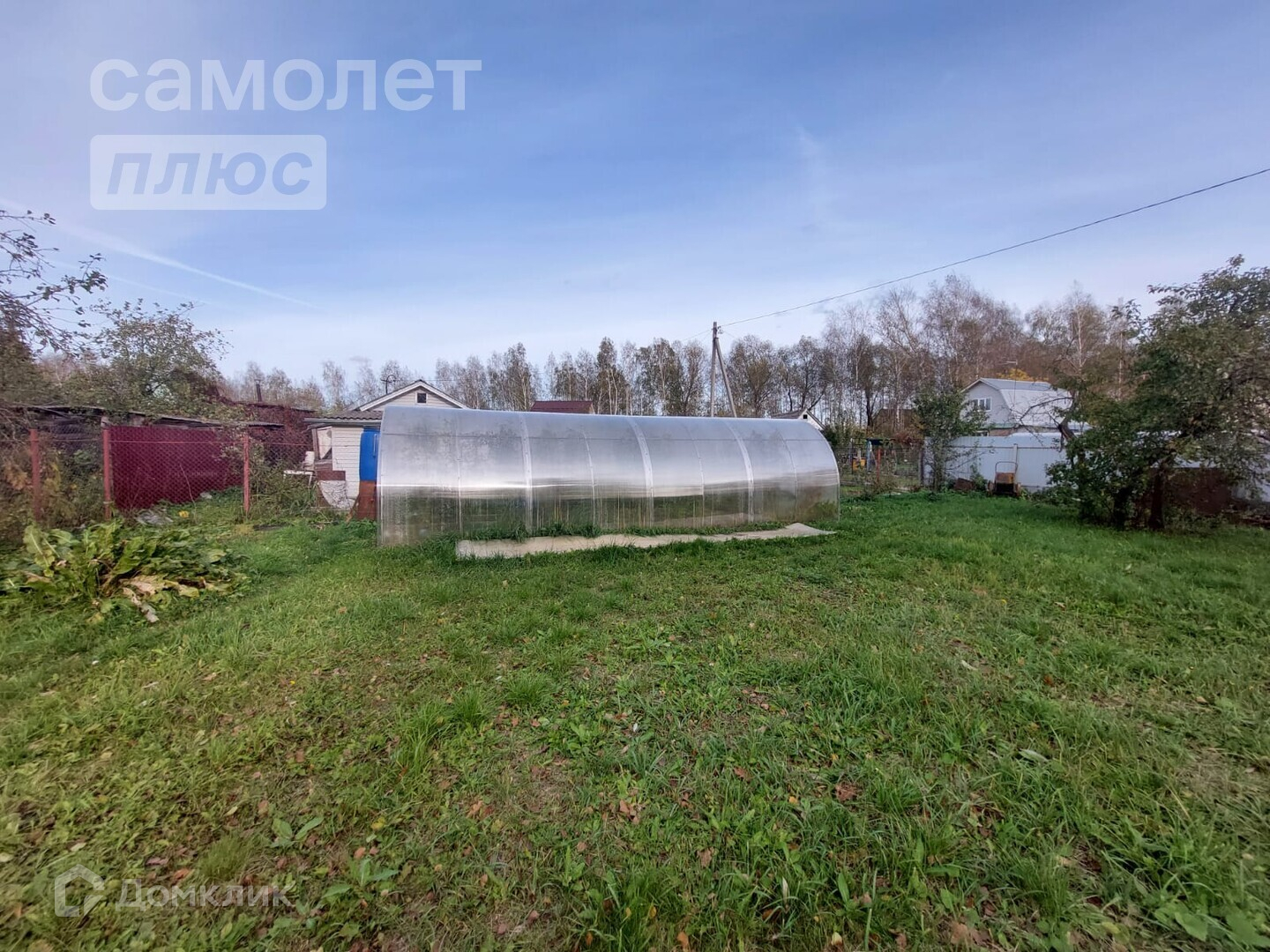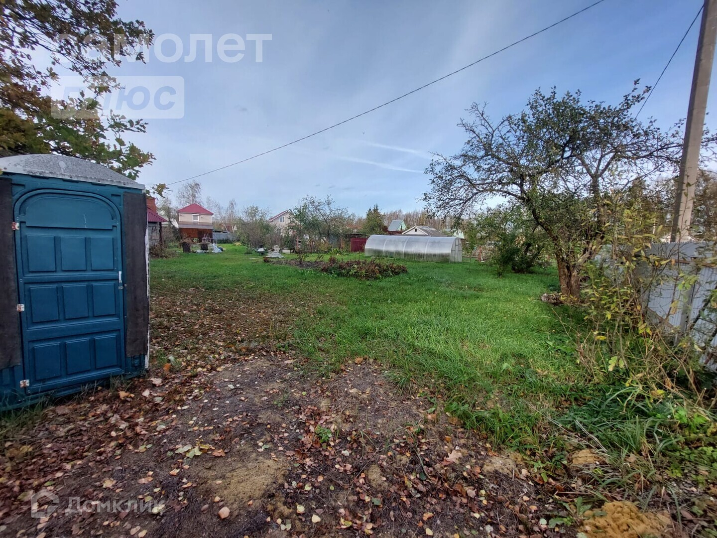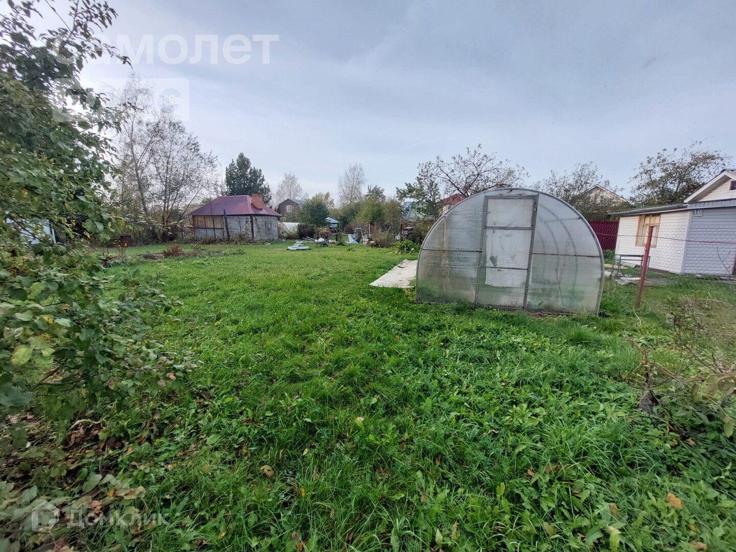 На участке плодово-ягодные деревья и кустарники, теплица, туалет.