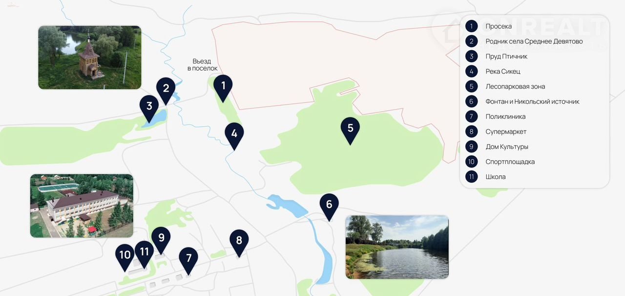 Восхитительные лесопарковые зоны, река и родники рядом с Вашим участком подарят ежедневное наслаждение природой и свежим воздухом.