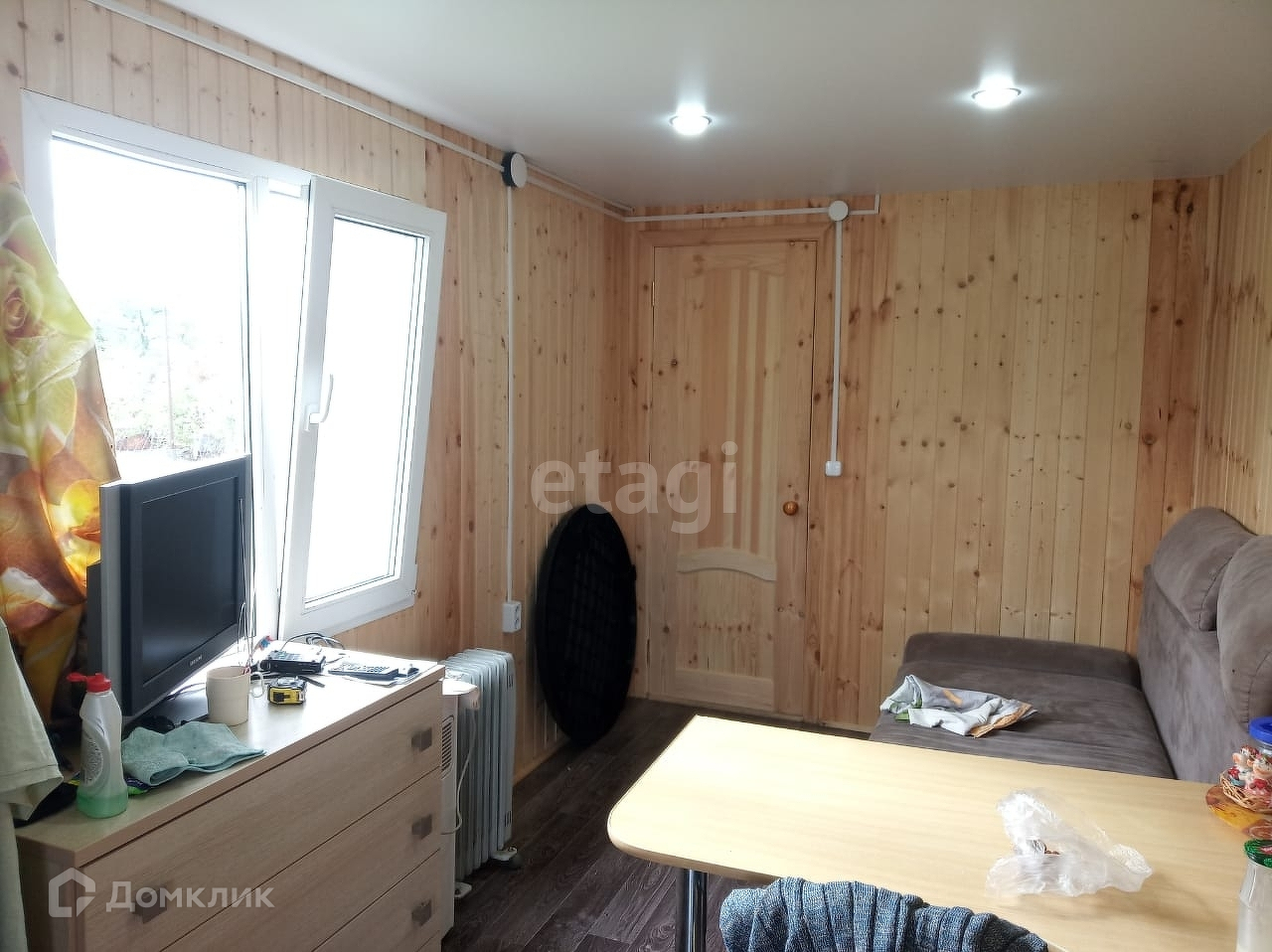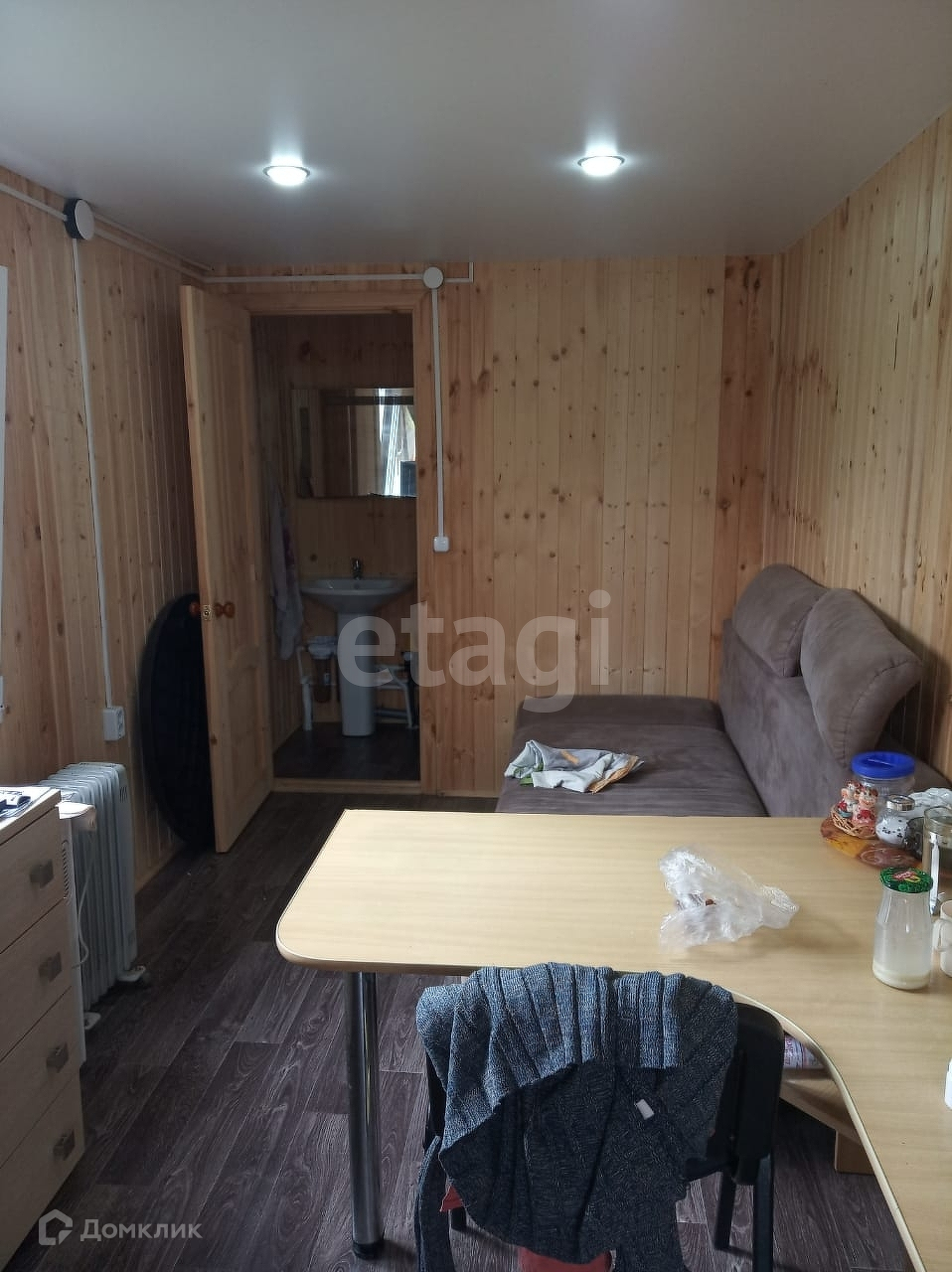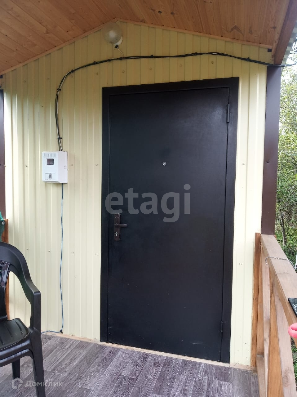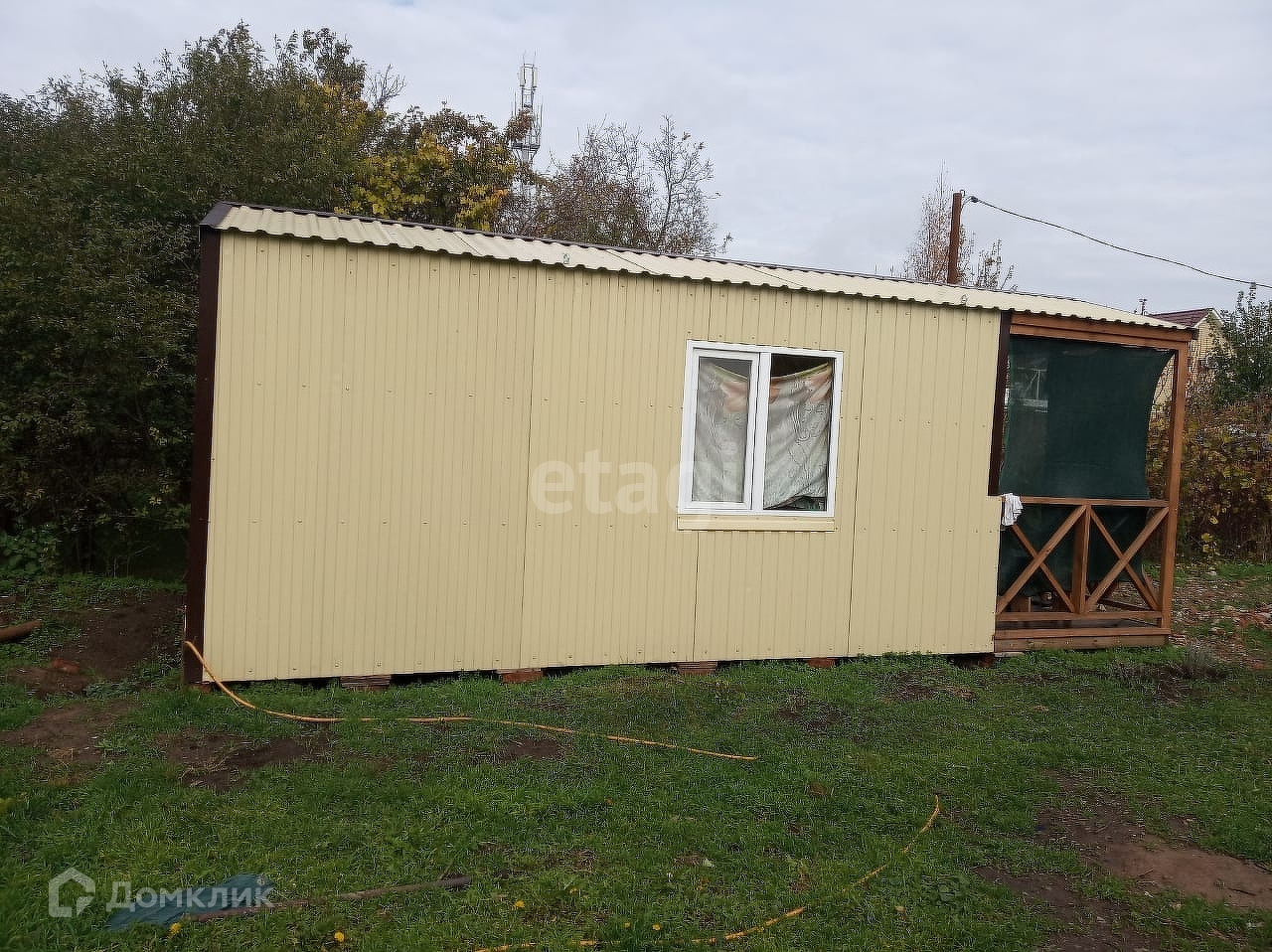 Предлагается к продаже садовый домик 17,5 м2 на земельном участке 6,5 соток в СНТ Строитель. Построен в 2022 году, утеплен и обшит вагонкой изнутри и металлопрофилем снаружи, оснащен террасой. Одна комната, установлен унитаз, раковина, душевой поддон и электроводонагреватель. Электричество заведено в дом 5 кВт. Вода на участке от скважины с автоподачей и фильтрами, канализация септик. Газ и водопровод — по меже.