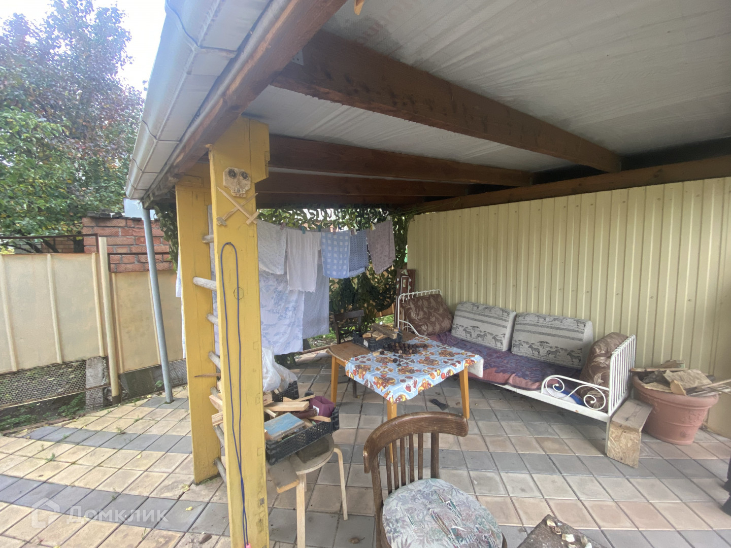 Двор благоустроенный, застелен плиткой, есть въезд для автомобиля, большой навес.