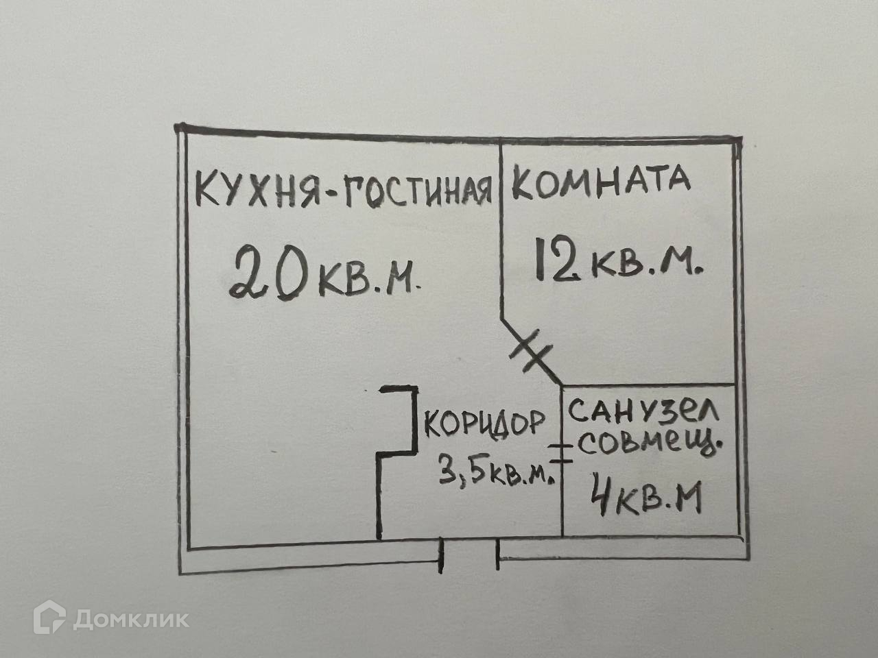 Площадь 50 кв.м., кухня-гостиная 20 кв.м.