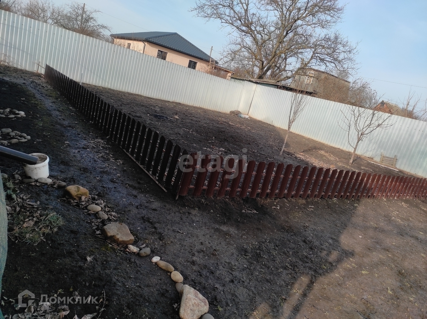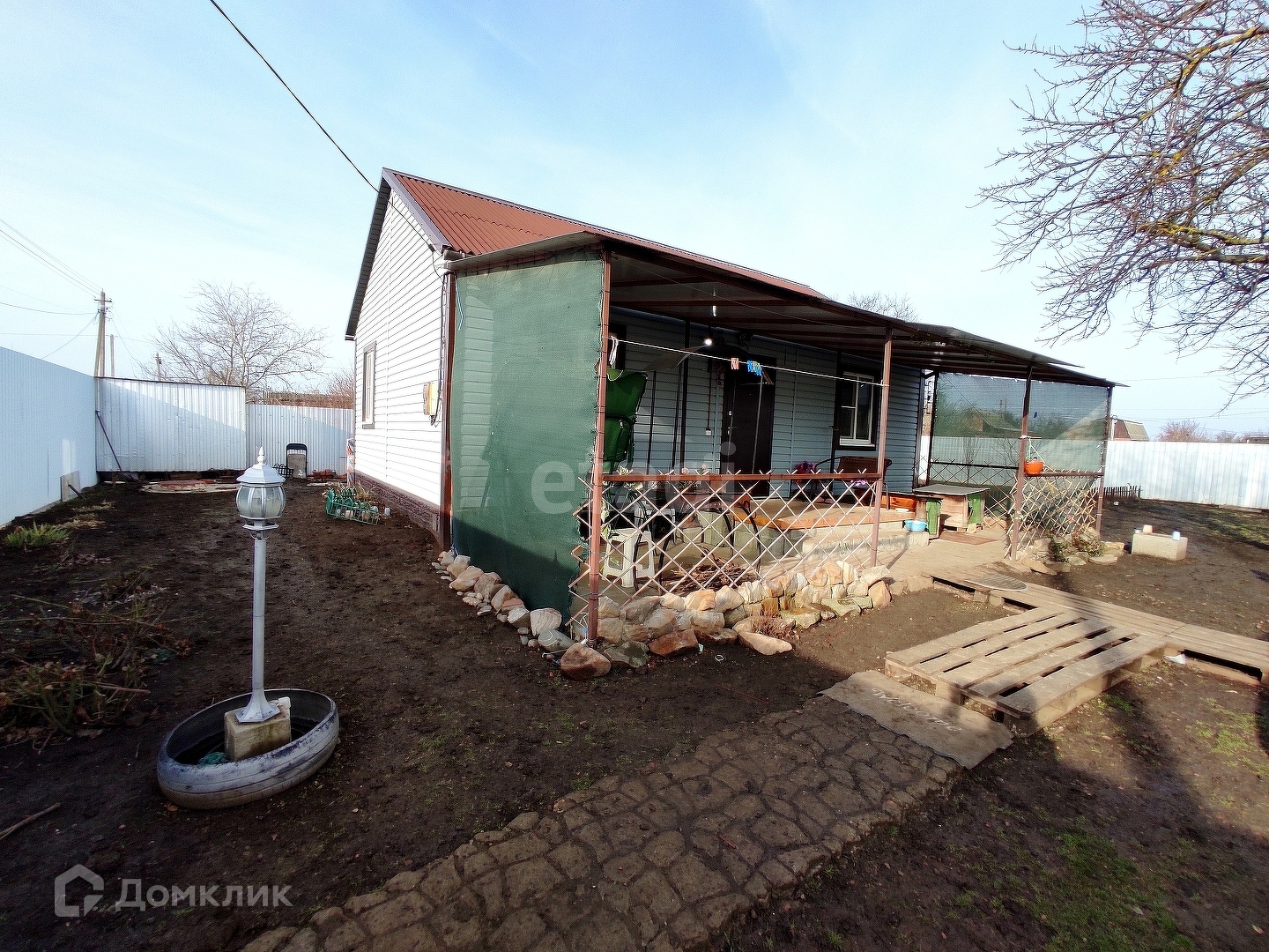 Территория участка огорожена. Дорожка отсыпана щебнем. В шаговой доступности автобусная остановка.