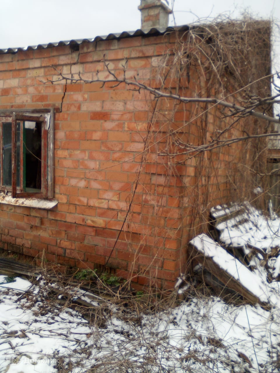 Саман + кирпич. Требуется ремонт. Категория земли ИЖС. В объекте требуется ремонт. Отопления нет. Электричество есть, напряжение сети 220 В. Водопровод на улице. Магистральный газ. К объекту идёт грунтовая дорога.