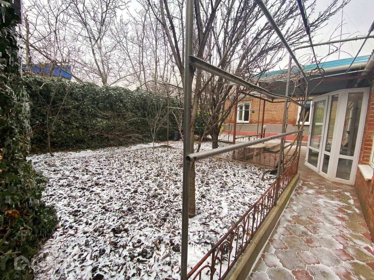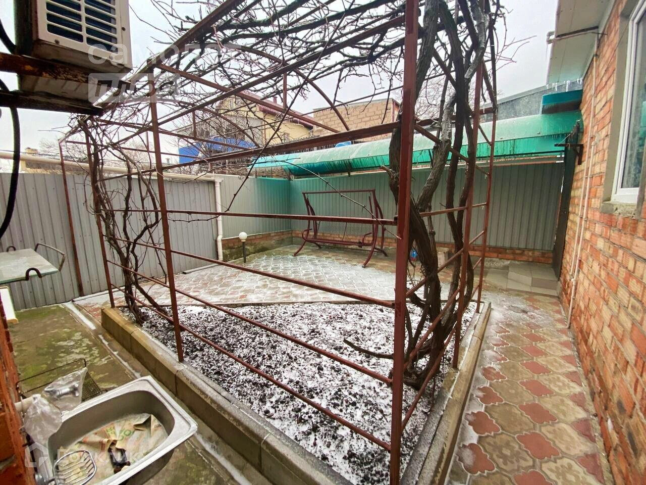 - Двор плитка, есть небольшой сад.