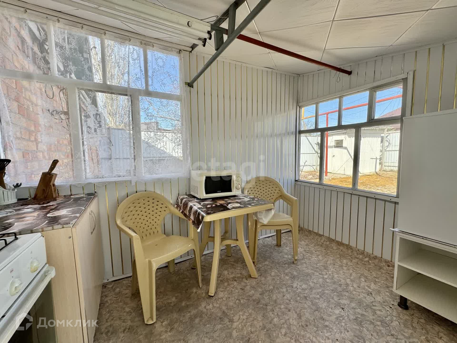 Предлагается к продаже дом и жилая времянка в курортной части города Ейск на побережье Азовского моря. Земельный участок 5,5 соток, подъездные пути - асфальт. Основной дом площадью 42,4 кв.м., состоит из трёх жилых комнат (две из них изолированные), кухня 8,1 кв.м., совмещённый санузел и прихожая. В доме выполнен новый ремонт, санузел полностью отделан плиткой. Дом продаётся со всей техникой и мебелью! Заходи и живи! Во дворе расположена отапливаемая жилая времянка (с отдельной жилой комнатой и санузлом), летняя кухня и крытая беседка. Дом и времянка отапливаются газовым индивидуальным отоплением, вода центральная, канализация – септик. Территория двора большая и ухоженная. Участок угловой, въезды для автомобиля с двух сторон.