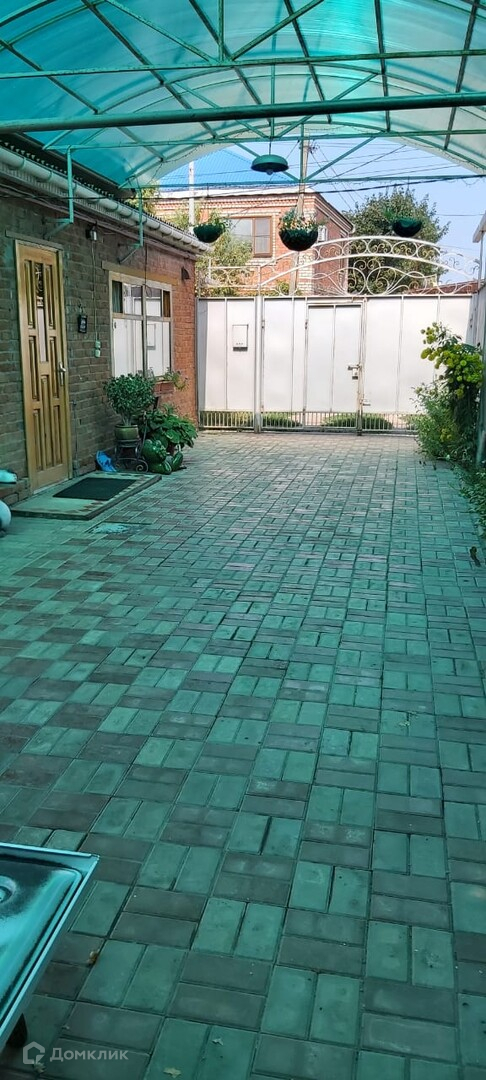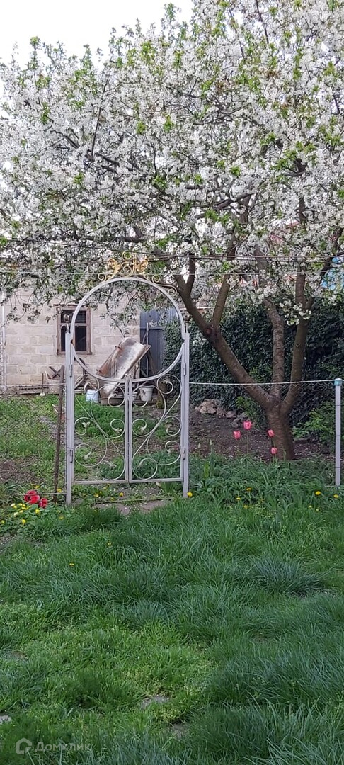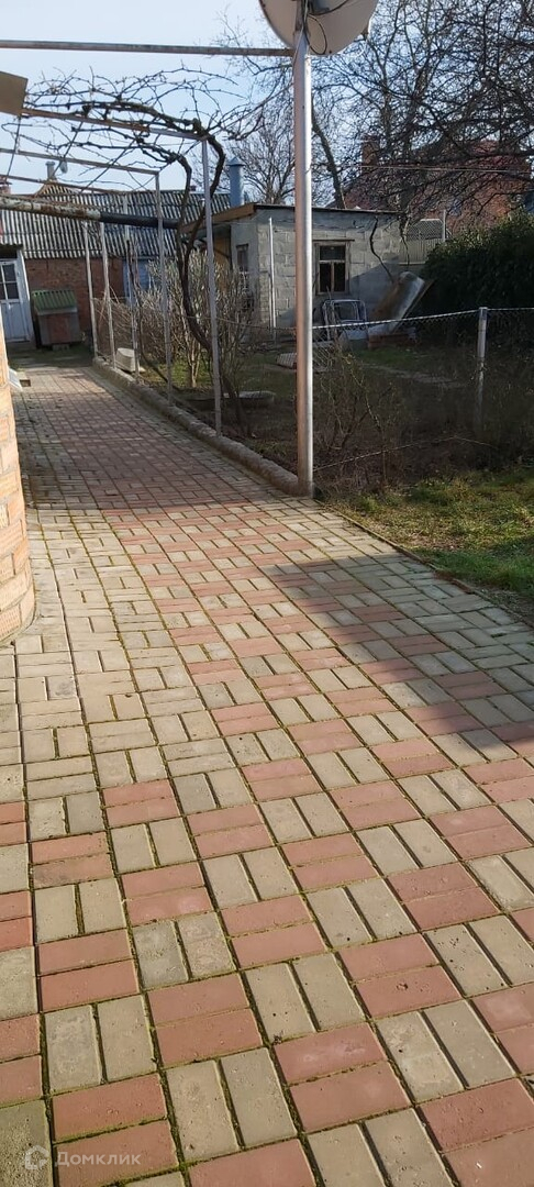 Во дворе навес, кирпичный хоз. блок. Есть небольшой огород, на котором растут плодовые деревья.