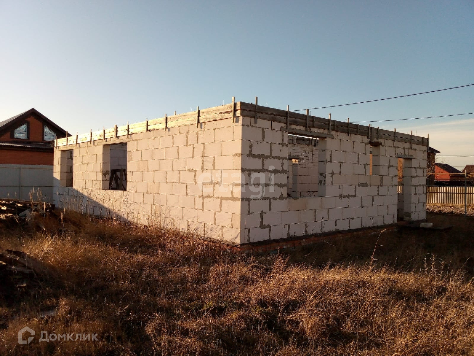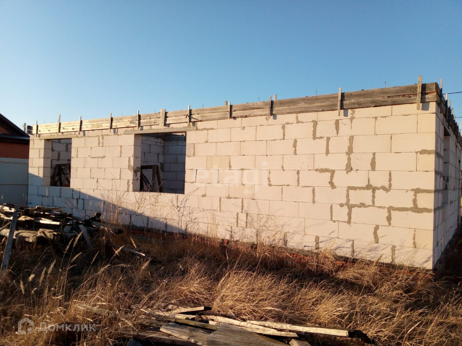 Предлагается к продаже отдельный дом на земельном участке 6 соток в районе Поля слез в г. Ейске. Дом не достроен, общая площадь – 108 кв.м., жилая – 65 кв.м., кухня – 16 кв.м. Дом 2020 года постройки, материал стен – газоблок. Из коммуникаций: электричество заведено на участок, газ и вода по меже. Участок огорожен забором из профнастила с двух сторон, кроме фасада. Участок широкий по фасаду, позволяет организовать на ваше усмотрение: сад, огород, хозпостройки, гараж, навес, баню и т.д.