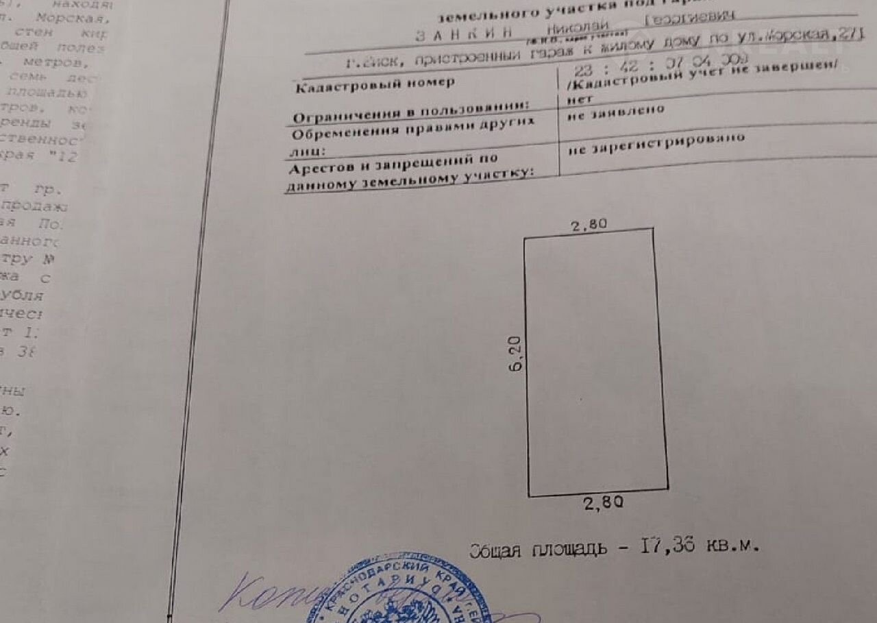 Гараж находится по адресу ул. Морская, 271, не в гаражном кооперативе. В гараже свет, смотровая яма - подвал. Размеры 6,2 м х 2,8 м. Документы, собственник. Перед гаражом навес для машины 6,5 м. Торг. Если не отвечаю на звонки, пишите сообщение.