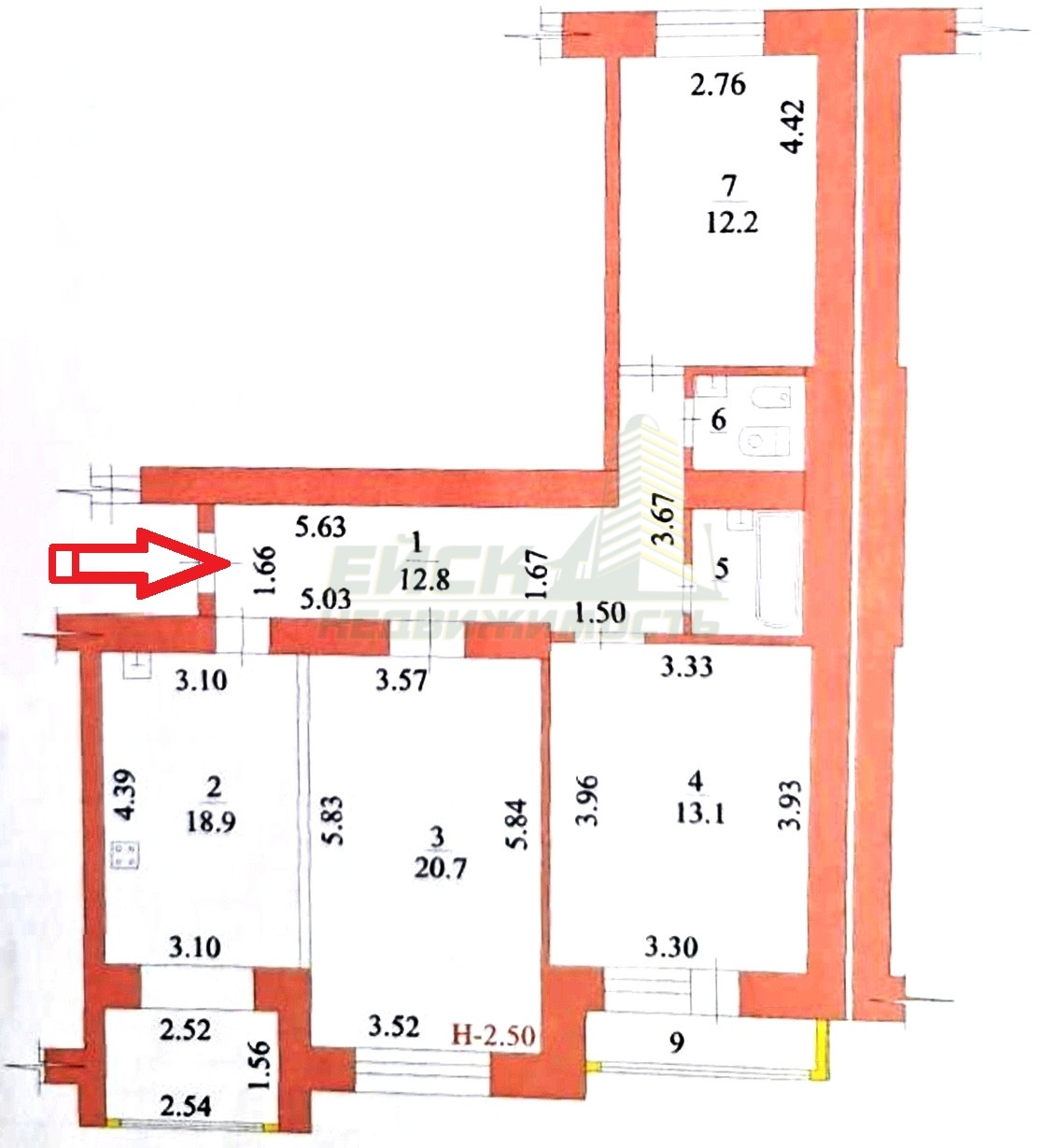 Высота потолков 2.5 м