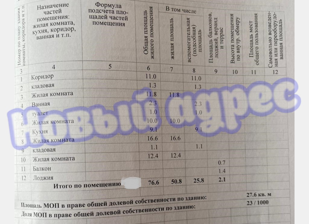 Общая площадь 76.6 м2