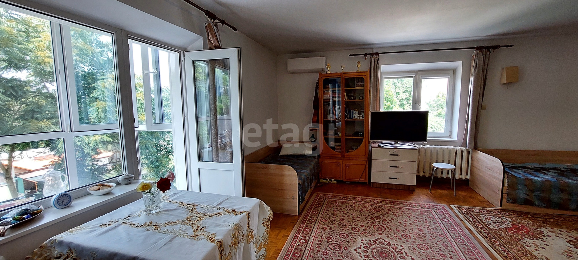 Студия в центре города недалеко от моря, расположенная на третьем этаже четырехэтажного кирпичного дома. Общая площадь 43 кв.м., жилая 29,6 кв.м. кухня 10 кв.м, санузел совмещённый в плитке. Косметический ремонт. Металлопластиковые окна, двойная входная дверь, новая сплитсистема, фильтр на воду, газовая колонка на горячую воду, газовая плита, хороший двухкамерный холодильник, стиральная машинка. В квартире остается мебель. Шкаф-купе, кухонный гарнитур, прихожая, две кровати. Просторный увеличенный балкон с панорамным остеклением. Тихий и ухоженный двор, утопающий в цветах и зелени. Парковка возле дома. К квартире прилагается большой кирпичный сарай. До центра города 7 мин. пешком, до моря 5 мин. Магнит, Пятёрочка рядом. До субботней ярмарки 5 мин пешком. Ярмарка выходного дня через дорогу. По средам во двор привозят молочную продукцию фермерского хозяйства по разумным ценам. Рядом с домом автомат по продаже питьевой воды. Никольский парк 5 мин. пешком. Парк Горького 7 мин. пешком. Остановка общественного транспорта рядом с домом. До центрального пляжа 9 мин. на автобусе, маршрутке. Школа и детский сад так же в пешей доступности. ПОДХОДИТ ПОД ИПОТЕКУ.